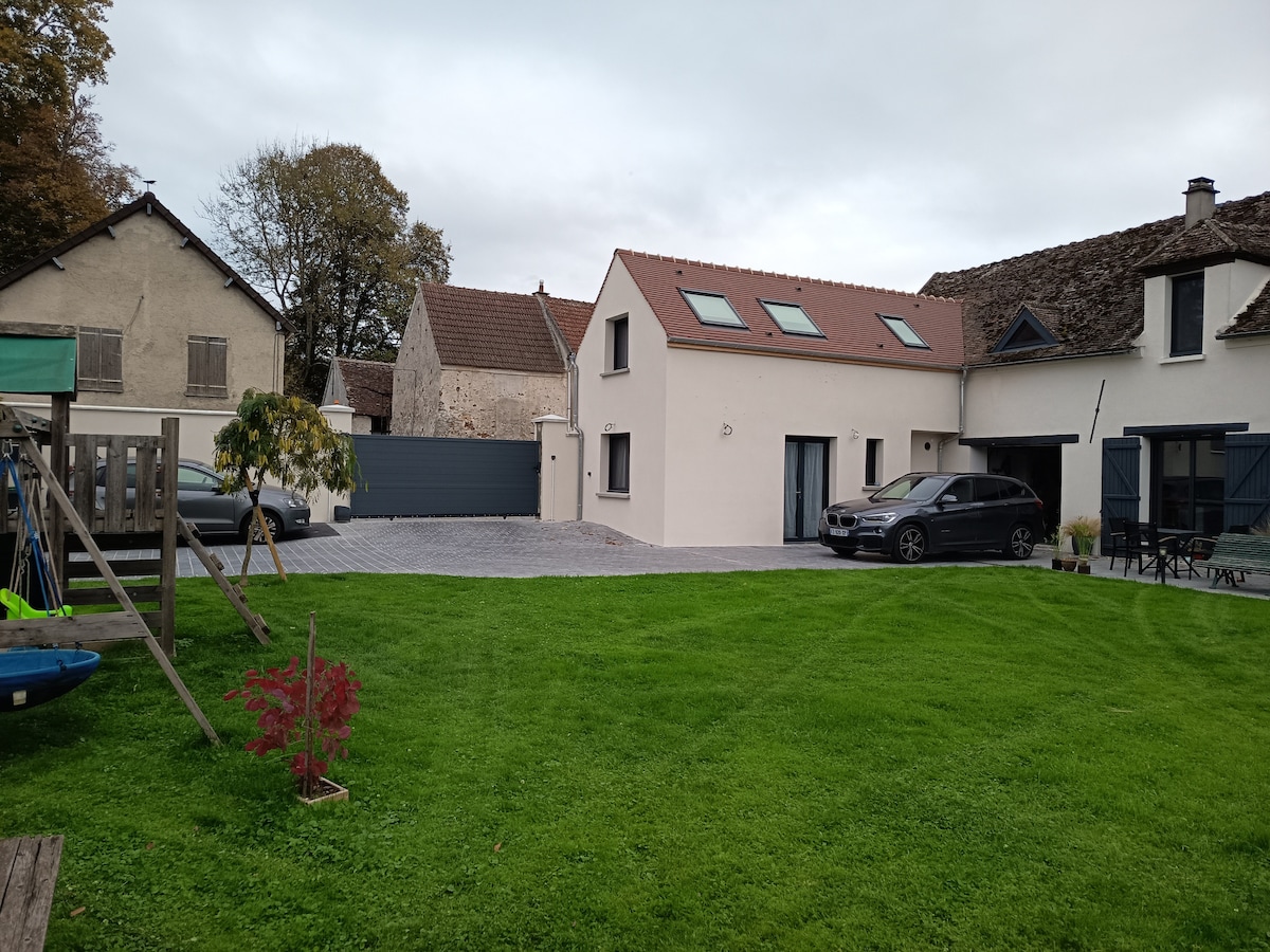 Valizlerinizi Disney'e yakın bu benzersiz bağımsız konuta bırakın. Tam donanımlı (klima, TV, mutfak), sessiz bir özel terası var. CDG'den TGV ile ve hızlı ağlarla ulaşım mümkündür (haritaya bakınız) Bağlantı imkanı ile ücretsiz park yeri. Disneyland Paris veya Jablines eğlence merkezine arabayla 10 dakika. Paris Gare de l'Est'e 30 dakikada bağlanan Esbly tren istasyonuna 10 dakika yürüme mesafesinde. 10 dakika yürüme mesafesinde, kaykay parkı, spor kompleksi + yüzme havuzu. 2 bisiklet ve elektrikli araç kiralama.