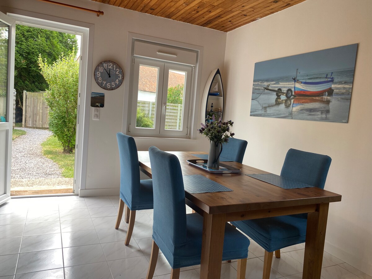 Sakin bir köyde, 4 kişilik kır evi (yetişkin için katlanır yatak mevcut) Özel giriş, otopark ve ücretsiz Wifi Banyolu ve dolaplı 2 yatak odası 1'i üst katta ve 1'i verandaya bitişik okuma köşesine sahip zemin katta Barbekü terası bahçe Ocak, fırın, mikrodalga fırın, buzdolabı, 6 gözlü lavabo, kahve makinesi, su ısıtıcısı, ekmek kızartma makinesi (İstek üzerine bebek yatağı, mama sandalyesi, biberon ısıtıcısı) Yakınlarda Mont de coupe, Mimoyecques vb. Wissant Ambleteuse Audresselles plajları ve burunlar <15 dk Marquise 10 dk, Calais, Boulogne <25 dk