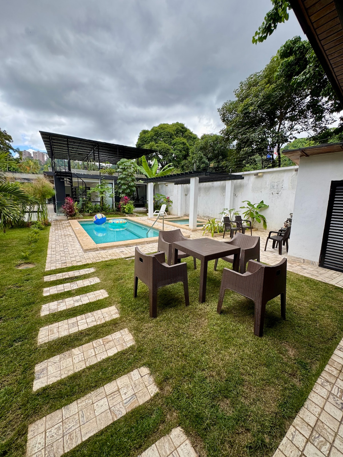 Enjoy and relax in this calm stylish space, close to the city's busy downtown and only 5 minutes from Las Mercedes fancy stores, with great views to the Avila Mount. Located in 1950 old neighbors and a closed safe street only to be used for the area resident, made our facility the best and safe one. The house had been renovated and designed with the best trendy ideas. Close to the supermarket, stores and all the stores you need. Two parking places and a garden to be happy, we accept your pet.