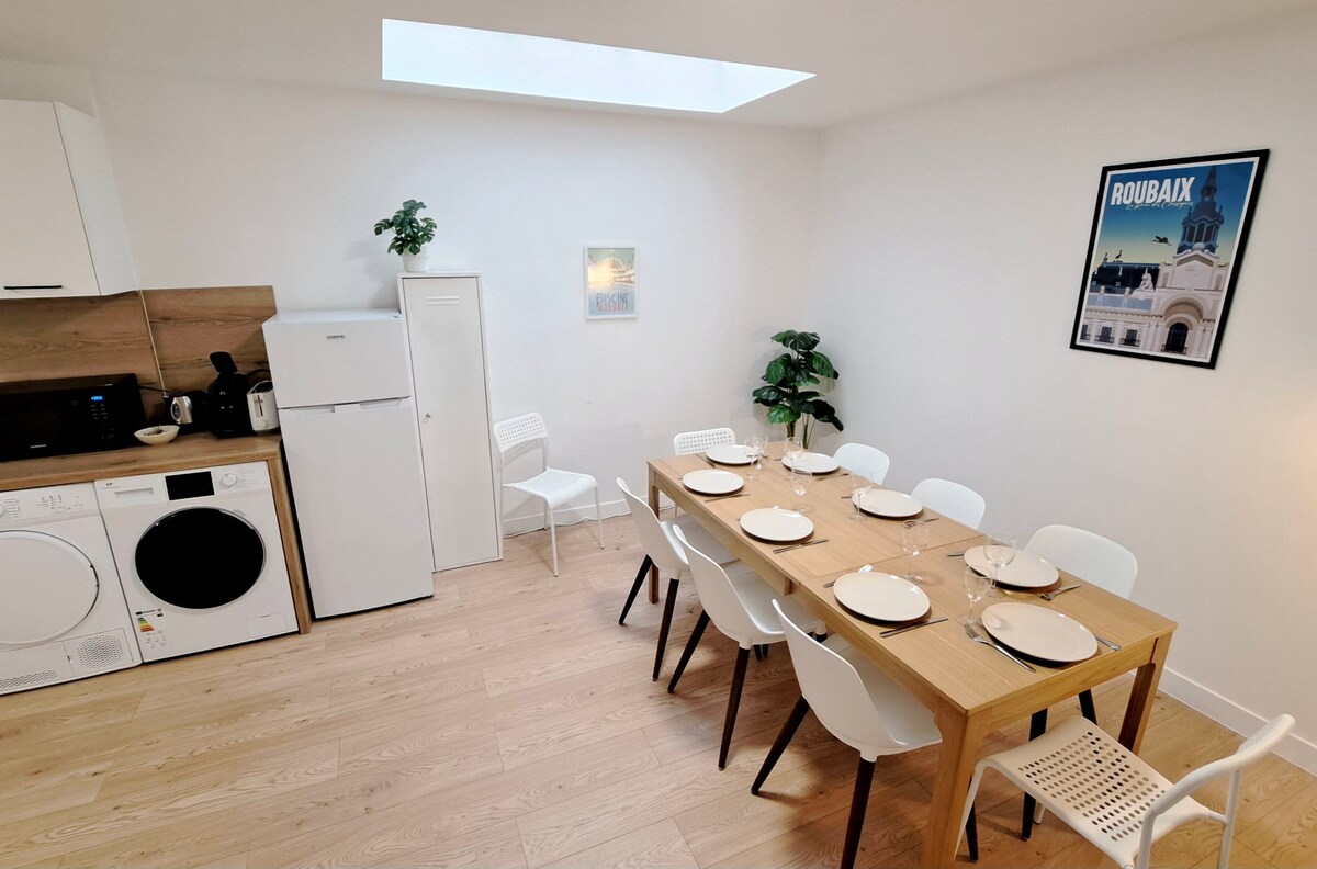 Tourcoing tren istasyonuna 50 metre mesafede bulunan sağlıklı yaşam yuvası PATIO'ya hoş geldiniz. Bohem, etnik ve doğal atmosferi, sıcak ve rahat bir ortam sunuyor. Saf bir dinlenme anı için çardağın altında korunan görkemli jakuzisinin tadını çıkarın. Çiftler için kaçamak veya şehirde bir mola için ideal olan bu konaklama, konfor ve cazibeyi birleştiriyor. Hemen rezervasyon yapın ve kendinizi şımartın!