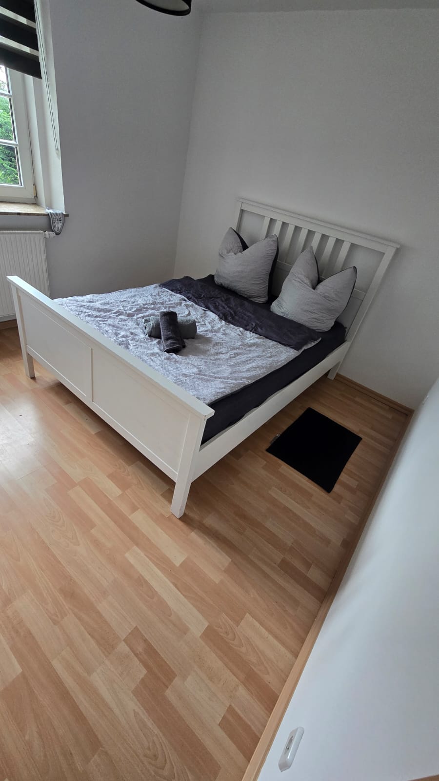 Zemin katta, yatak odası ve iki yatak, oturma odası, banyo ve gerekirse mutfak bulunan daire. Daire kilitli değildir, merdiven boşluğundan erişilebilir. Sessiz bir konumda. Evin önünde park yeri. Şu anda tıbbi nedenlerden dolayı evcil hayvanlara karşıyız (canlı böbrek bağışı)