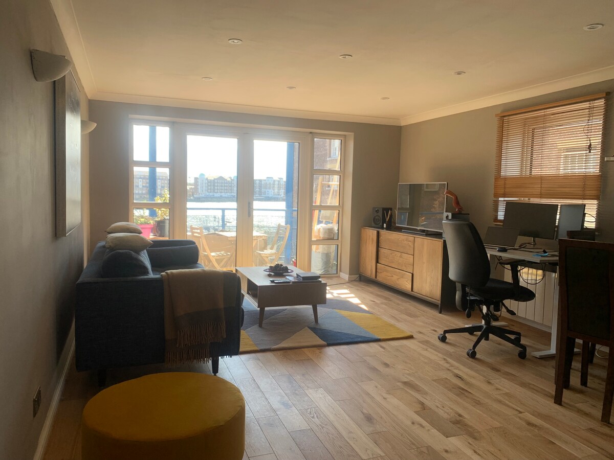 Thames üzerinde lüks 2 yatak odalı/2 banyolu Londra dairesi.