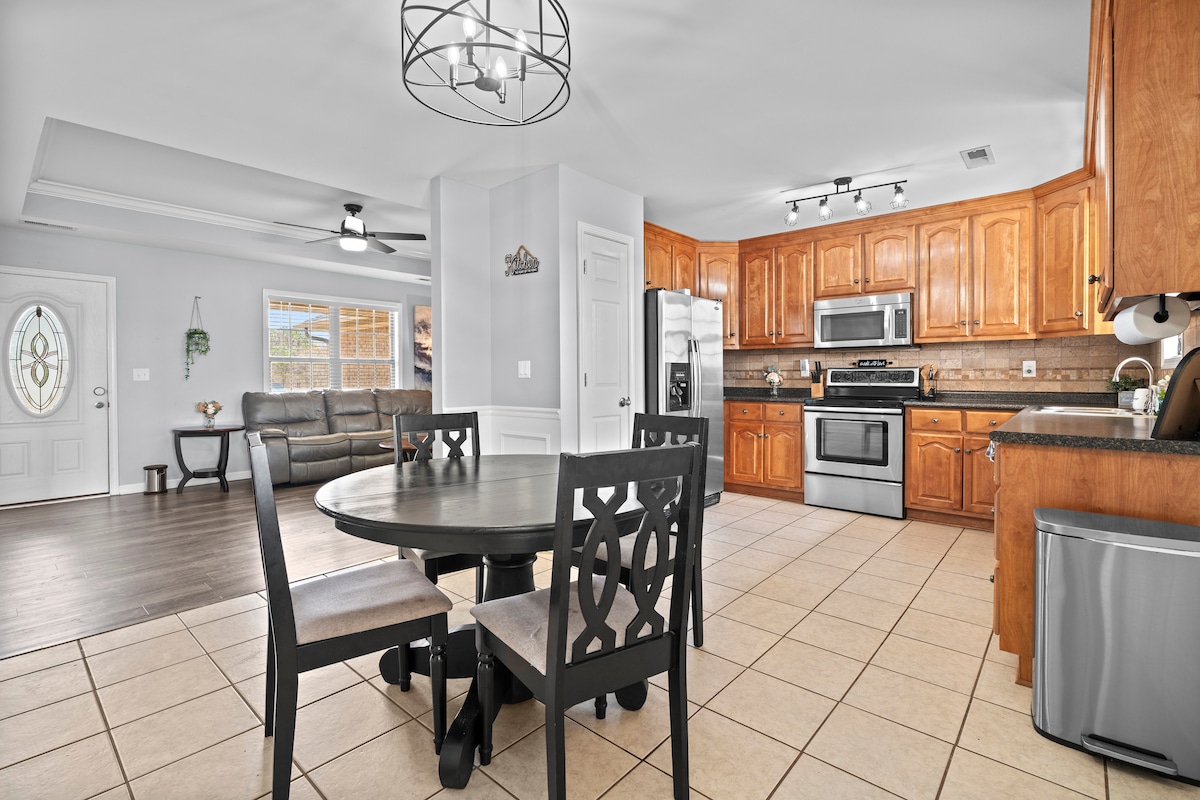 Burası hem aileler hem de çalışma grupları için harika bir yer. Evcil hayvanınız varsa, büyük, çitle çevrili bir bahçemiz var. (Konaklama başına 59 $ evcil hayvan ücreti) Grubunuz yüksek çözünürlüklü 65 inçlik TV'mizde film izleyebilir. Tam donanımlı bir mutfağa erişiminiz olacak. Konaklamanızda düşük, sürdürülebilir bir ev ortamı sunuyoruz. Ev SW Decatur'da, alışveriş ve eyaletler arası yolun yakınındadır. Şehir merkezine sadece 2 mil uzaklıkta.