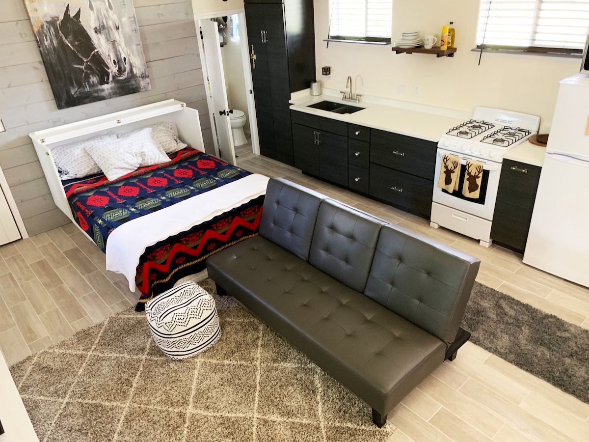Yeni yenilenmiş bu stüdyo kulübe, Ruidoso'daki konaklamanız sırasında dinlenmeniz için ihtiyacınız olan tüm olanaklara sahiptir. Küçük mutfakta, isterseniz yemek pişirebilmeniz için tabak ve mutfak gereçleri bulunmaktadır. Serin sabah ve akşamları keyif alabileceğiniz stoklu bir kahve barı vardır. Kulübe Sudderth'in dışında ve şehir merkezine yaklaşık 1-2 mil uzaklıktadır. Yerel restoranlara, kafelere ve alışveriş merkezlerine çok yakındır. Stüdyo kulübe sahibinin evinin arkasında bulunuyor, ayrı bir kapı girişi var.