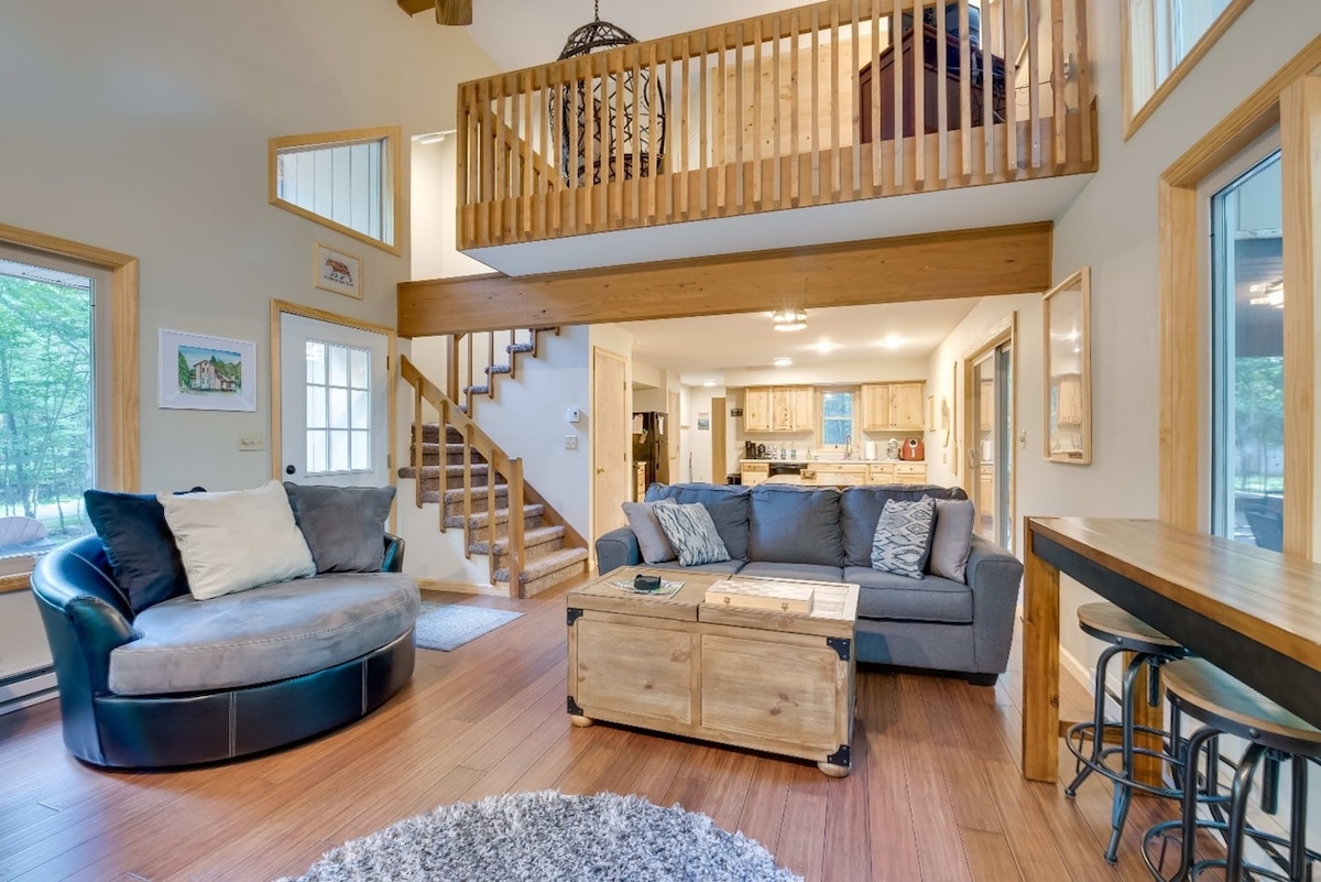 Unutulmaz bir tatil için ihtiyacınız olan tüm olanaklara sahip, 3 yataklı 2 banyolu rahat Pocono kulübemize kaçın. Yüzmek, balık tutmak, kanoya binmek veya manzaranın tadını çıkarmak için caddenin karşısındaki göle doğru kısa bir yürüyüşe çıkın. Jakuzide dinlenin veya s'mores için ateş çukurunun etrafında toplanın. Tam donanımlı mutfakta bir ziyafet veya ızgarada barbekü yapın. Tonozlu tavanlar ve rustik dekor sıcak ve davetkar bir atmosfer yaratır. Topluluk Tescil Bilgileri için "Dikkat edilecek diğer ayrıntılar" bölümüne ⚠️ bakın ⚠️