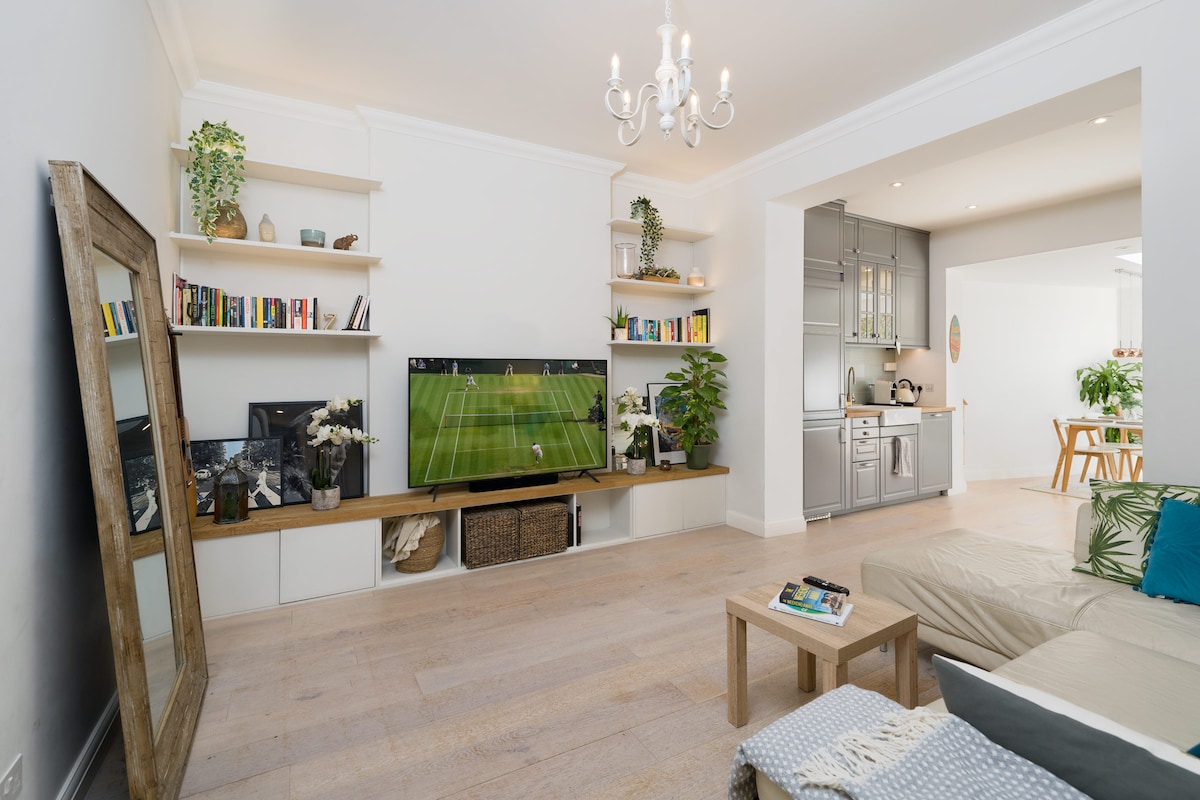 Lüks Battersea stüdyosu, açık şömineli, parka yakın