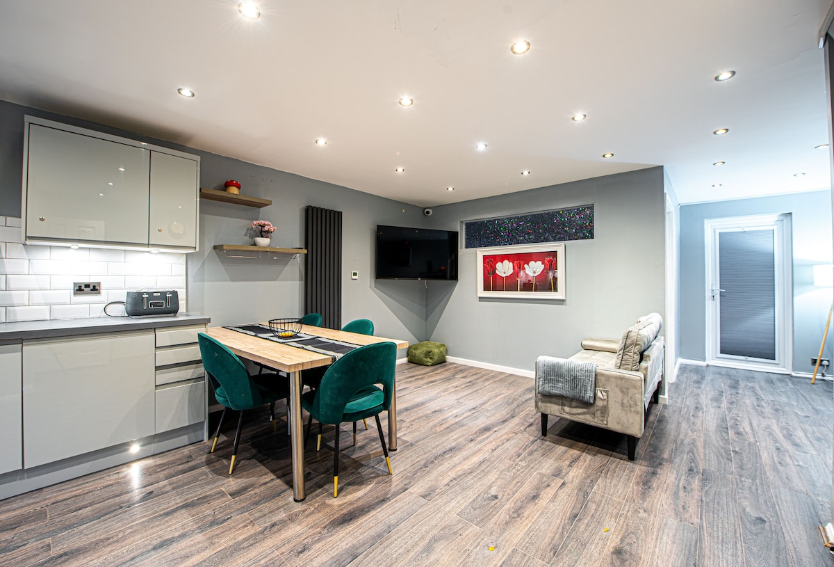 4 misafire kadar alan sunan bu şık 2 yatak odalı Airbnb, dinlenmek veya eğlenceli bir kaçamak için mükemmeldir. İşte tadını çıkaracağınız şeyler: Küvet Sauna Özel bahçe Ücretsiz kablosuz internet bağlantısı ve Netflix bulunan akıllı bir TV ile rahat bir yaşam alanı. Konforlu yataklara ve bol depolama alanına sahip iki şık yatak odası Tam donanımlı mutfak Tüm temel olanaklara sahip modern banyo. Ayrı çamaşır odası. Ücretsiz otopark Kendi kendine giriş/çıkış Alkolsüz Prosecco Çarşaf ve yastık takımları Havlu Spa bornozu ve terlik Çay Kahve