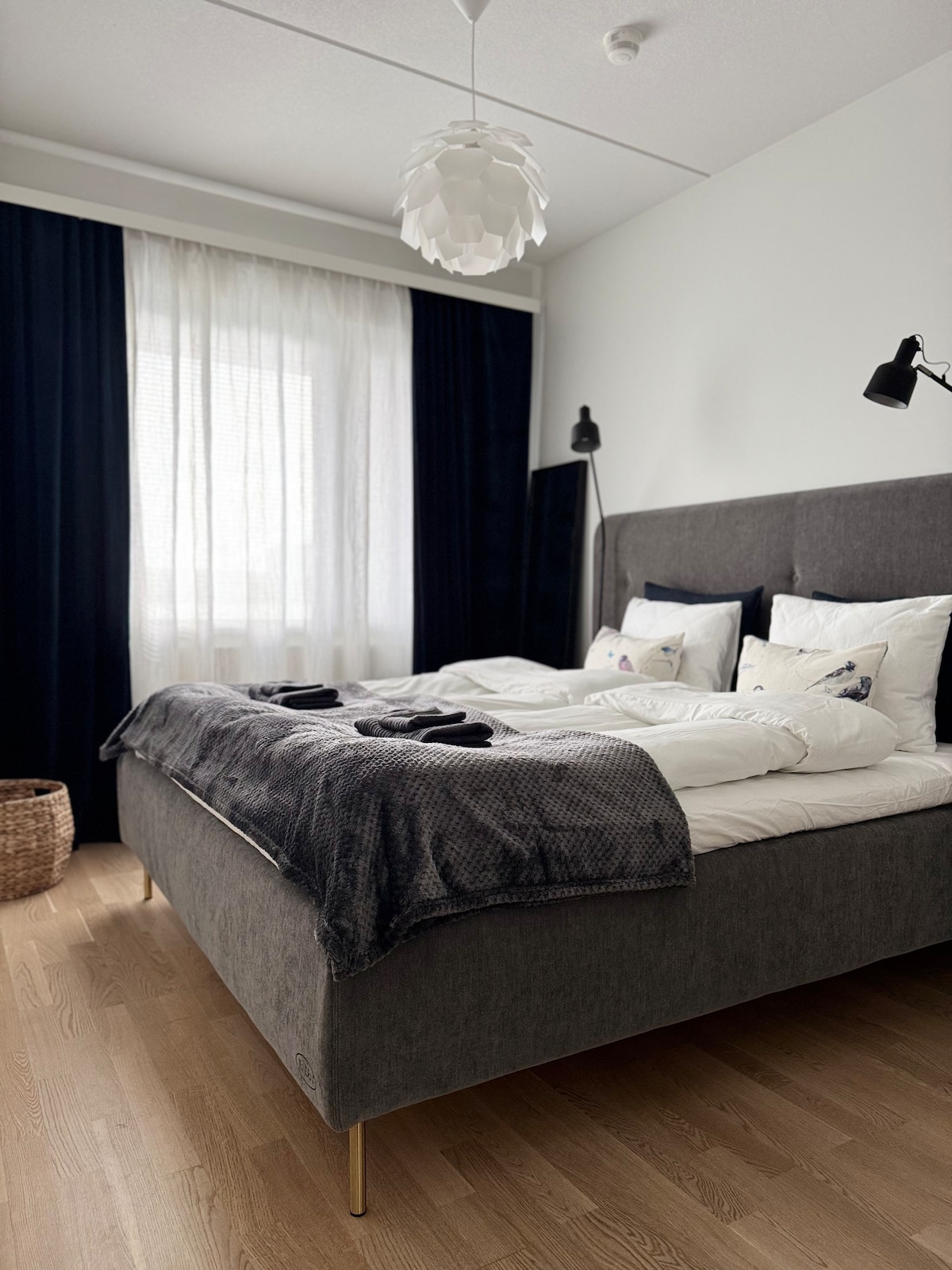Highlights: 4 kişilik (160 cm çift kişilik yatak + çekyat) Özel sauna Kablosuz internet bağlantısı ve akıllı TV Merkezde 59 m² yenilenmiş daire. Açıklama: Rovaniemi'nin göbeğinde benzersiz ve tamamen yenilenmiş 59 m²'lik daire. Yatak odasında 160 cm çift kişilik yatak ve oturma odasında bir çekyat ile 4 misafire kadar mükemmeldir. Restoranlara, kafelere ve mağazalara sadece birkaç adım uzaklıktaki konaklamanızda kendi saunanızın ve kablosuz internet bağlantınızın keyfini çıkarın; hem tatiller hem de iş seyahatleri için idealdir.