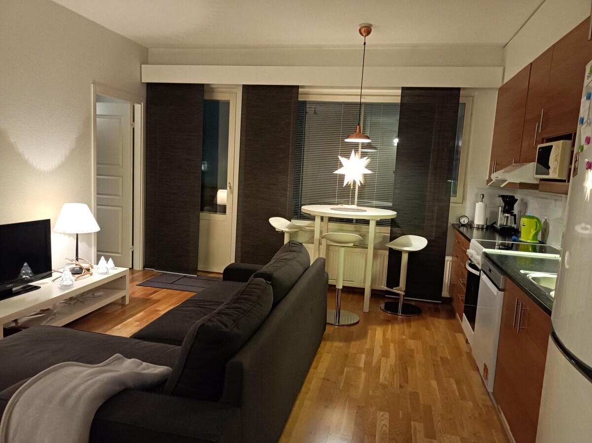 Güzel dekore edilmiş 55 m2 tek yatak odalı daire, saunalı. Daire birinci kattadır. Rovaniemi'nin merkezinde, pazar meydanının yanında daire. Tren ve otobüs durağına 800 m yürüme mesafesindedir. Dairenin ısıtma direği bulunan kendi ücretsiz park yeri vardır. En az 2 günlük rezervasyonlar. İki yetişkin veya çocuklu bir aile için idealdir.