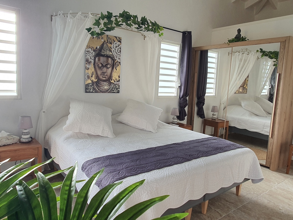 Devet tepelerinde (güneydoğu adası, Gustavia'ya 7 km ve havaalanına 15 dakika mesafede, elektrikli kapılı çitle çevrili, 1000 M2 bahçeli müstakil villa. Toiny ve Petit cul de sac plajlarına bakan muhteşem deniz manzarası. Arabayla 2 dakikalık mesafede birkaç plaj, yakın çevredeki oteller ve restoranlar. Karşı tarafı olmayan özel havuz. Çok sessiz bir alan. Konforunuz için tam donanımlı villa, Fiber optik kablosuz internet bağlantısı, TV, Uydu. Netflix.