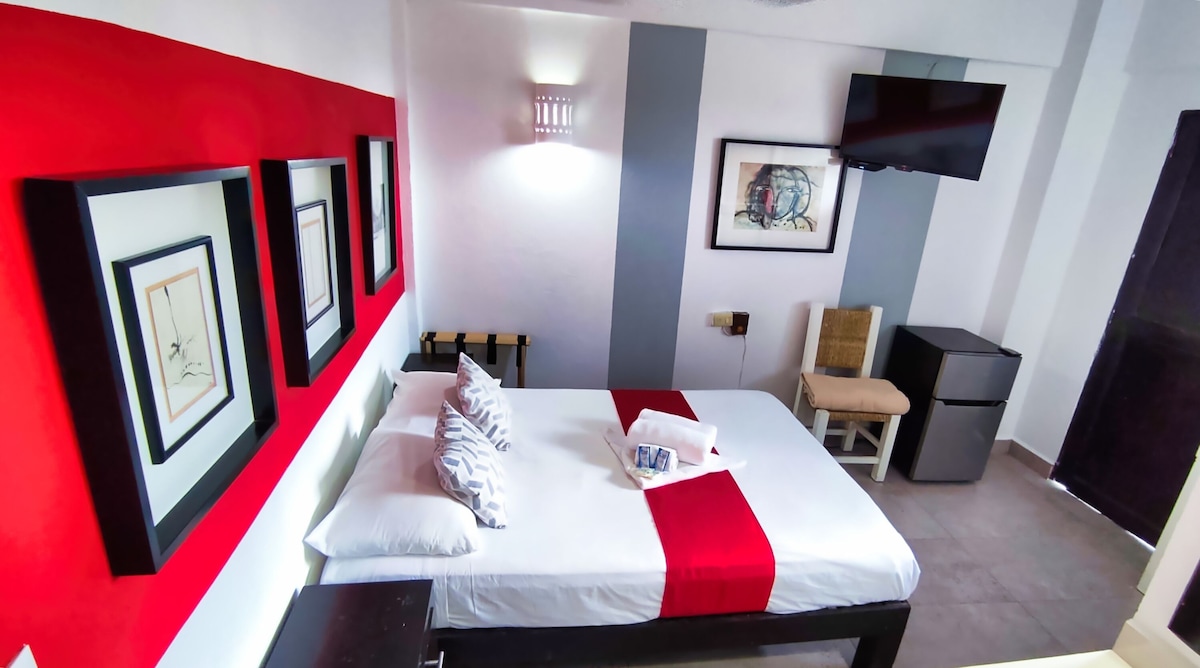 King boy yatağı olan sokağa bakan bu odalarda LED akıllı TV ve dizüstü bilgisayar dostu çalışma alanı, kablosuz internet bağlantısı, USB portları ve prizleri ve sıcak duşlar bulunmaktadır. Mekânımızda misafirlerin uzanması için ortak alanlara odaklanan verimli misafir odaları bulunmaktadır. Havlu ve çarşaflar, oda içi klima, hafızalı köpük yatak örtüsü ve Ücretsiz Cowork Jakuzi kullanımı dahildir. Otel lobisinde mikrodalga fırın ve ücretsiz sabah kahvesi. İstek üzerine mini buzdolapları 50 $ peso/gün