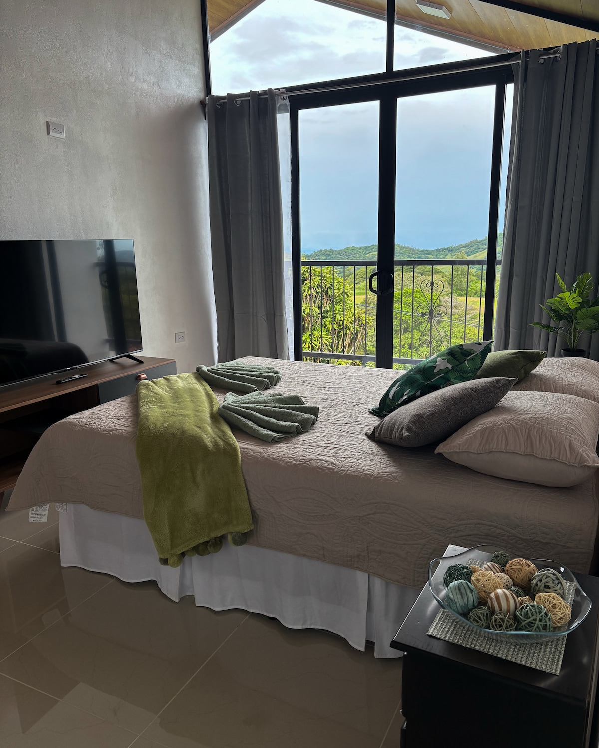 6 hektarlık bir çiftlikte yer alan bu ev, yakın zamanda doğada bir inziva yeri olarak inşa edildi. Yemyeşil bitki örtüsü, inişli çıkışlı tepeler ve Nicoya Körfezi'nin çarpıcı manzaralarıyla çevrili huzurlu bir sığınak. Vardığınız anda Kosta Rika bulut ormanının dinginliğini hissedeceksiniz. Kulaklarınızı kuşların cıvıltılarına ve ağaçlarda ara sıra duyulan maymun seslerine açın... İster terastan nefes kesen gün batımlarını izleyin ister tesisteki patikada yürüyüş yapın, burası dinlenmek, yeniden bağlanmak ve ilham almak için bir mekân.