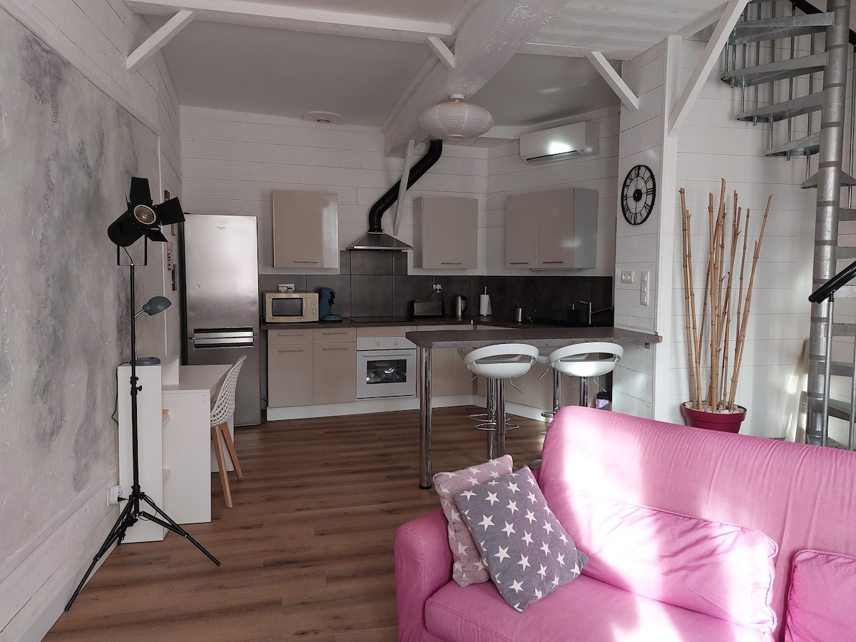Maisonnette privée et climatisée située en centre ville. Parfaite pour 2 voyageurs ou un couple avec enfants Climatisation réversible. La chambre est équipée d'un lit en 160. Les 2 lits enfants en 90 sont situés sur la mezzanine La salle de bain est équipée d'une douche à l'italienne. Les WC sont totalement séparés. Cuisine équipée comprenant four à gaz, four micro-onde, réfrigérateur, lave-vaisselle et cafetière Nespresso Télévision dans le salon WIFI gratuit Ménage compris Parking gratuit.