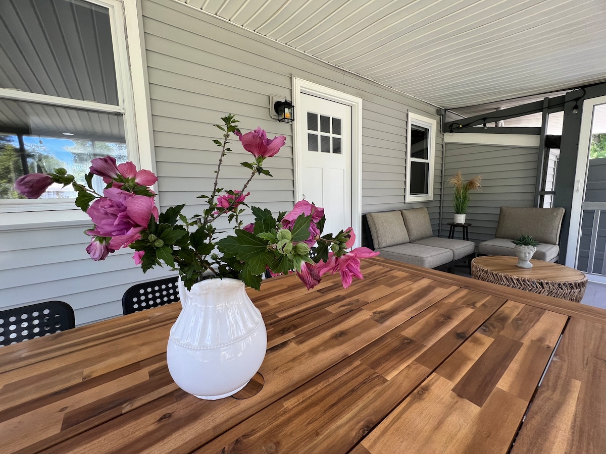Ev işlerini atlayın, sadece gelin ve rahatlayın! Koydan bir blok ötede, güzelce yenilenmiş, evcil hayvan dostu kulübemiz, özenli ekstralarla otel tarzı konfor sunuyor. Tamamen çitle çevrili bahçenin, elektrikli araç şarj cihazının ve plaj havluları da dâhil tüm çarşafların keyfini çıkarın. 2 kürek tahtası, şezlonglar, şemsiyeler, bir Wonder Wheeler arabası ve soğutucu sunuyoruz. Tam mutfak, rahat bölümlü, 75 inç akıllı TV, hızlı kablosuz internet bağlantısı - süpürme yok, liste yok - sadece saf tatil havası.