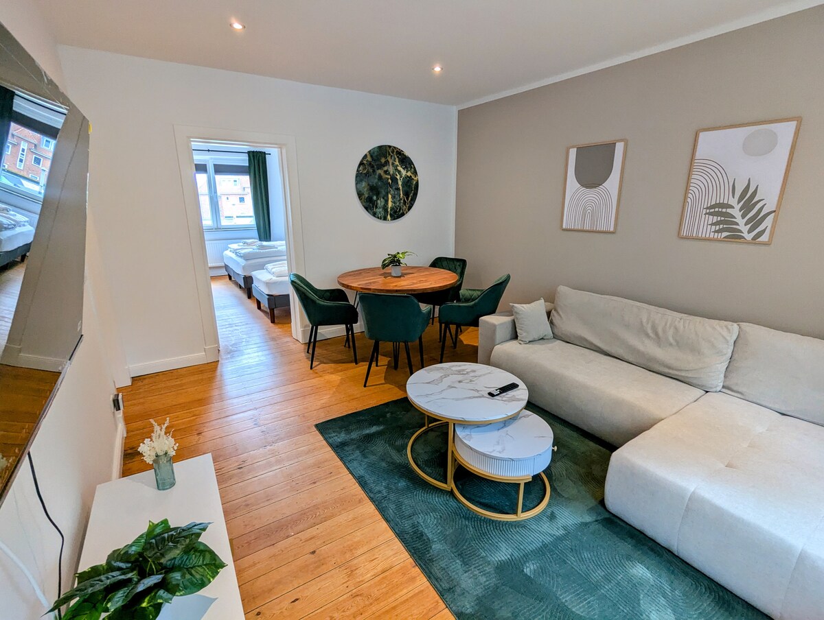 Rahat daire Lübeck'ün merkezinde, nehrin yakınındadır. Ev 1800 yılından kalmadır ve bu döneme özgü tipik bir merdiveni vardır. Lübeck'in geçitlerinden birinin girişindeki evdir. Çoğu cazibe merkezi yürüme mesafesindedir. Kendi banyonuz ve yemek pişirme alanınız, yemek odanız ve yatak odanız var. Sadece birkaç adım ötede restoranlar, barlar ve küçük dükkanlar var. Yaz aylarında hamamın olduğu karga göletinde yüzebilirsiniz. Tekne turları yapabilir, Hostentor'u ziyaret edebilir ve daha fazlasını yapabilirsiniz.