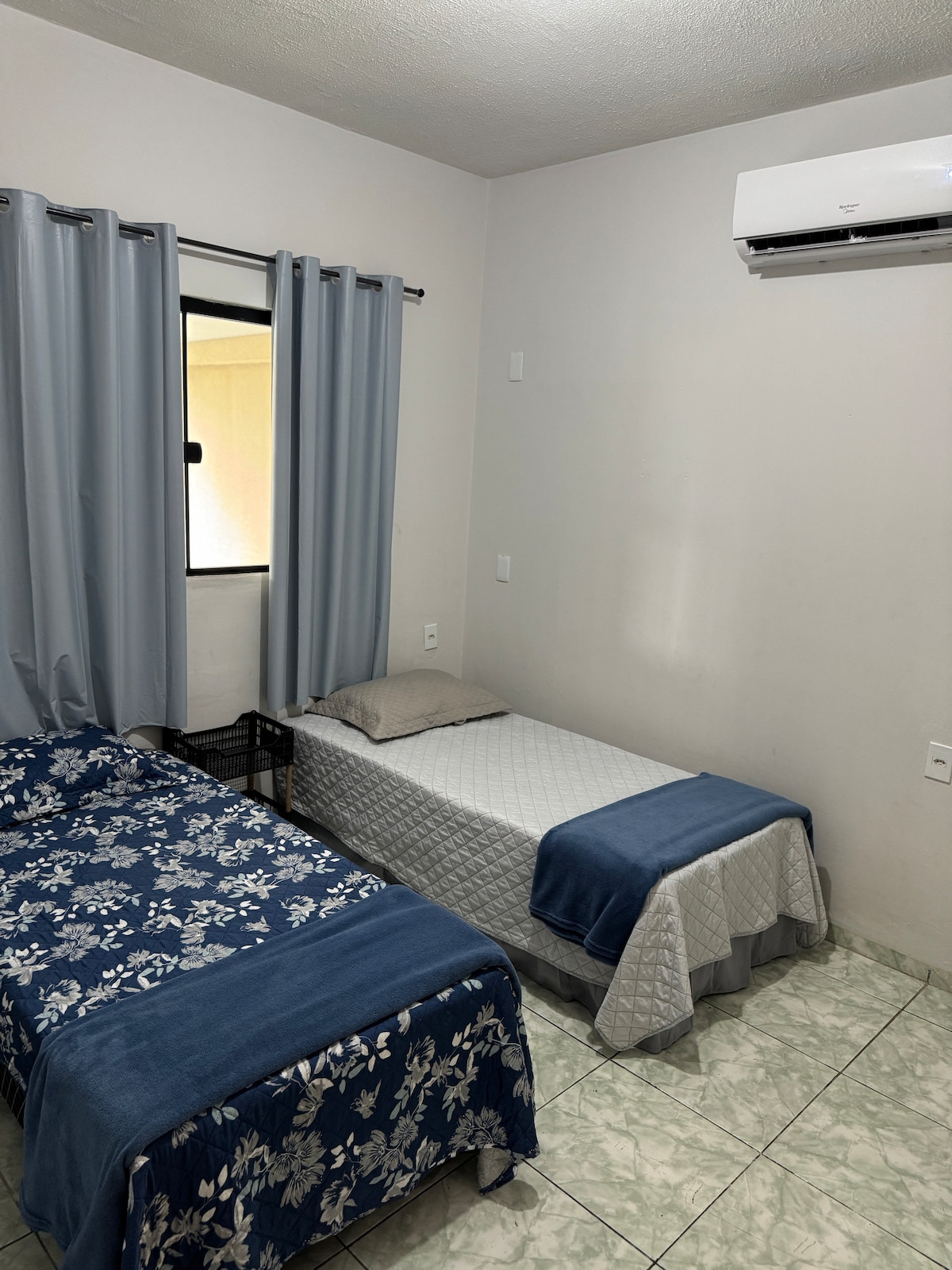 Tatil evimiz konfor ve pratikliği birleştirmek için ideal bir yerdir. Biri ebeveyn banyolu 2 yatak odası, TV odası, kaliteli internet, yatak odalarında klima ve oturma odasında vantilatör bulunmaktadır. En fazla 6 kişi barındırabilir ve 45 güne kadar konaklayan şirket grupları için mükemmeldir. Barbekü, dinlenmek için hamak, tam donanımlı mutfak ve elektronik kapı sunarak samimi bir ortamda güvenlik ve keyifli anlar sağlar. Çamaşır makinesi sunuyoruz.