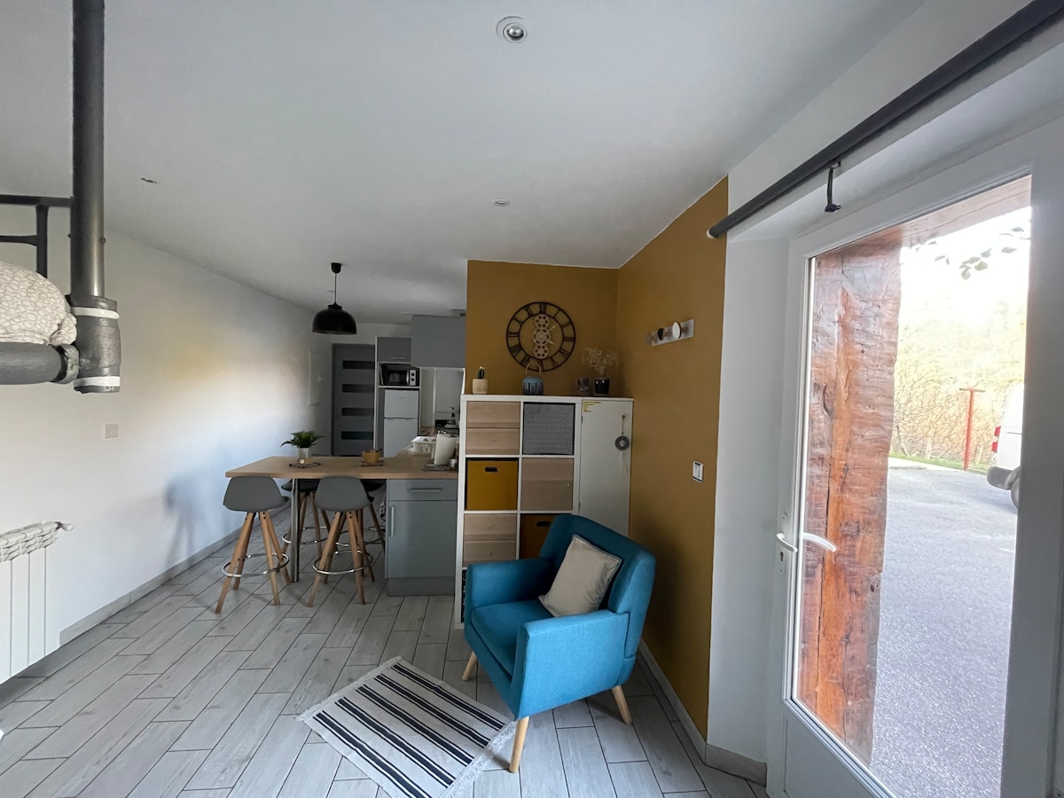 Kırsal kesimde yeni bir evin eki olan T2, kanepe yataklı bir oturma odası, tavan altında güzel bir yüksekliğin tadını çıkaran ve ışıkta banyo yapan, mobilyalı ve donanımlı bir mutfak, uyuyan 160 kişilik bir yatak odası, gömme duşlu müteakip banyo, ayrı tuvalet ve çamaşır makinesine sahip kiler. Veranda terası, dağların bir bakışıyla sakin ortamın keyfini çıkarmanızı sağlayacak.