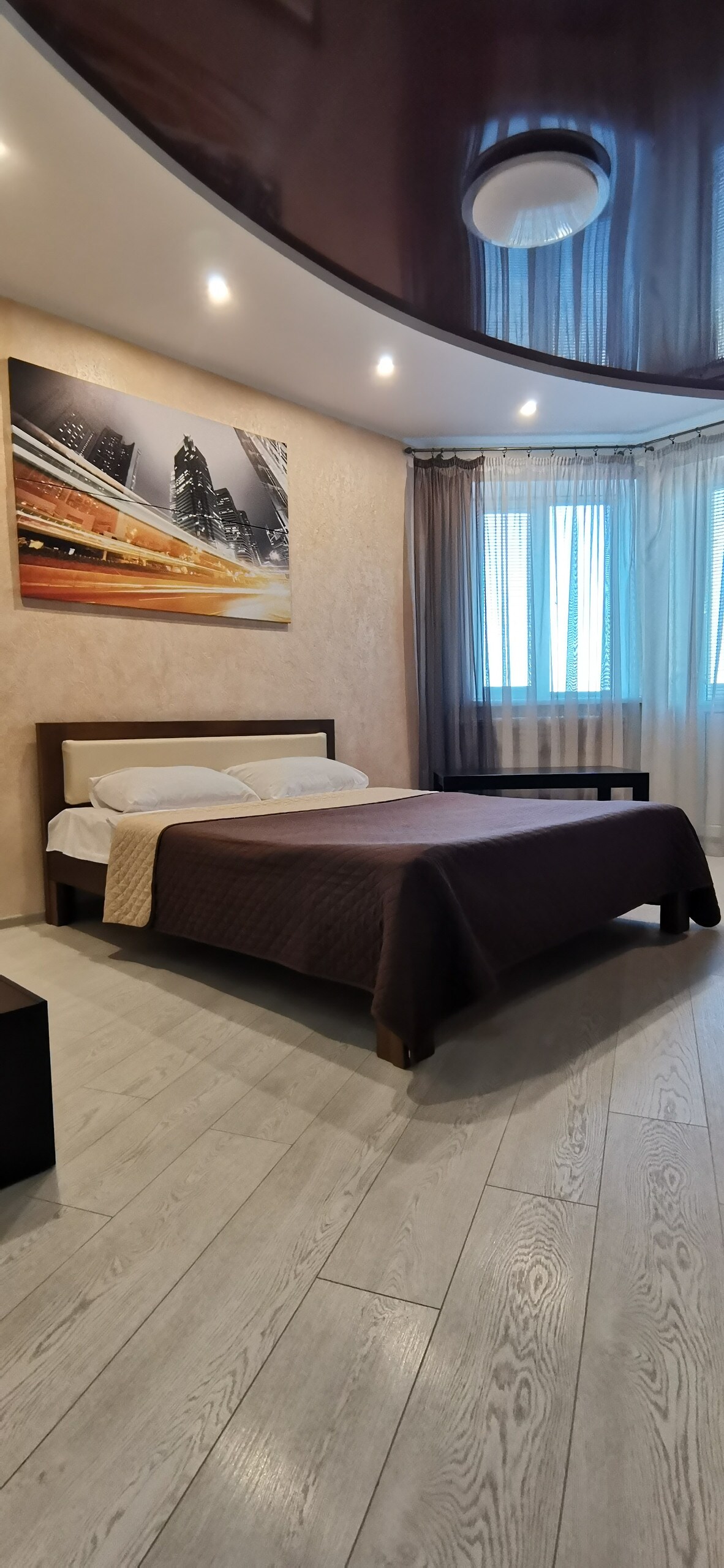 Lutsk'un tam göbeğinde, çok iyi bir manzaraya sahip, gezilecek yerlere uygun, öğle yemeği pişirme imkanı olan bir mutfak, iki kişilik ve tek kişilik bir yer olan geniş bir tek yatak odalı daire.