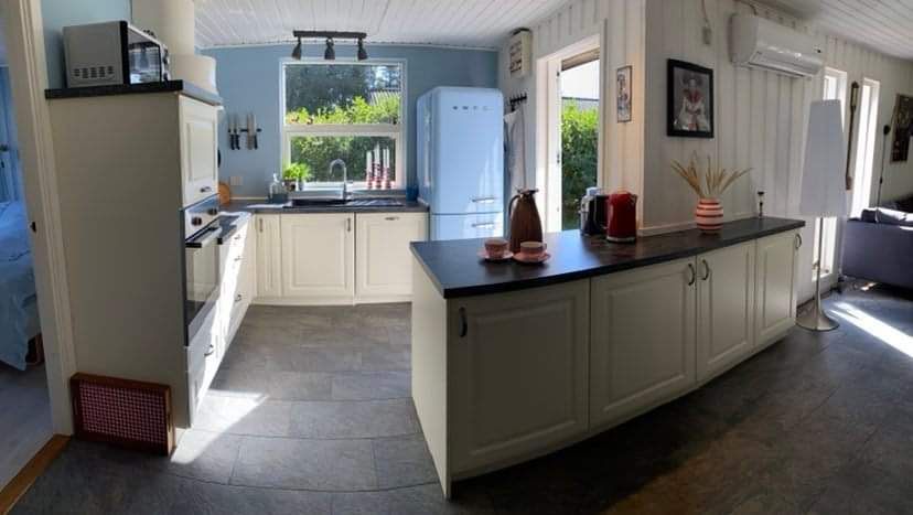 Evden veya terastan Kattegat manzarasının tadını çıkarın. Güzel ve çocuk dostu plaja sadece 150 metre mesafede. Sahil şeridi boyunca yürüyün veya evin bisikletlerini kullanarak 3 km mesafedeki Sæby limanına gidin. Ev tamamen yenilenmiştir ve doğal bir alanda bulunmaktadır. Yakındaki kamp alanındaki tesisleri kullanma imkanı vardır - minigolf, havuz alanı, futbol sahaları ve oyun alanı. Ev, yaklaşık 68m2 olup, mutfak-oturma odası/salon ve banyo ile iyi döşenmiş bir bodrum katı bulunmaktadır. 1 katta, yarım duvarla ayrılmış 4 yataklı alan bulunmaktadır.