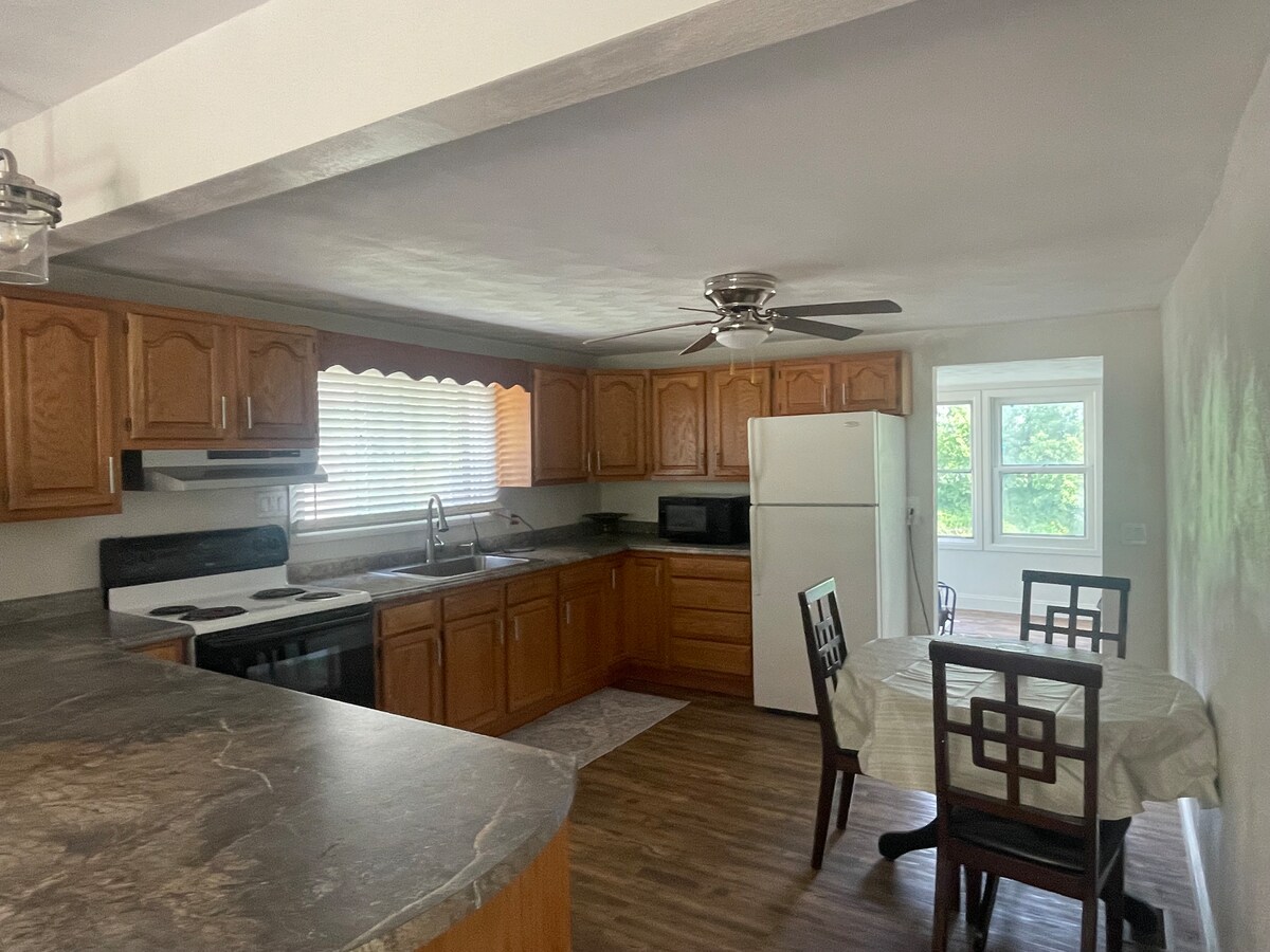 The Blue Pearl'a hoş geldiniz. Macomb'da aydınlık, yeniden düzenlenmiş 2 yatak odalı/2 banyolu bir ev. 2 queen yatak + çekyat ile 6 kişi barındırabilir. Evcil hayvan dostu, hızlı kablosuz internet bağlantısı ve çalışma alanı, tam donanımlı mutfak, çamaşır makinesi/kurutucu, 2 Roku TV, ateş masası olan özel teras alanı, aile ve arkadaşlarla dinlenmek için oyunlar ve kitaplar ve bitişikte 1 araçlık garaj. WIU, Amtrak, şehir merkezi ve hastaneye sadece 2 blok mesafede. Aileler ve uzun süreli konaklamalar için uygundur.
