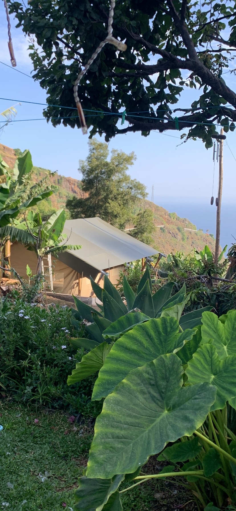 Banana Garden Glamping Madeira, benzersiz banyoları olan romantik ve konforlu çadırlar sunmaktadır. Madeira'nın güneşli güney kıyısındaki yemyeşil bir muz tarlasında yer alan glamping çan çadırınız, konfor veya stilden ödün vermeden iki kişilik muhteşem bir doğa kaçamağı sunuyor. Sitemiz, türünün tek örneği bir konaklama için okyanus ve dağ manzaralarının yanı sıra huzurlu bir ortamı birleştiriyor. İster romantik bir kaçamak, ister dijital bir detoks ya da Madeira'yı deneyimlemenin yeni bir yolunu arıyor olun, işte bu.