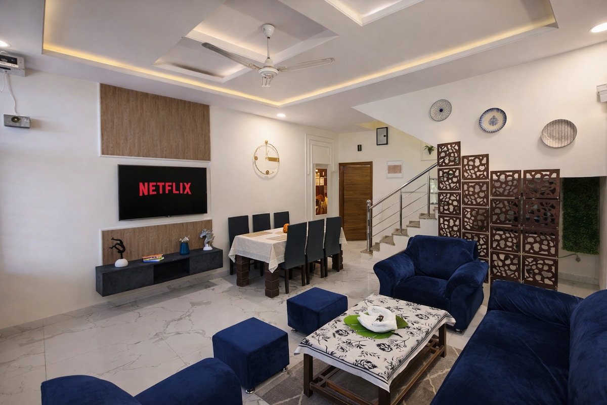 Modern dubleksimize hoş geldiniz! Her birinde özel tuvalet bulunan üç rahat yatak odası sizi bekliyor. Mutfak buzdolabı, mikrodalga fırın, RO su arıtıcı, gazlı ocak, tabak çanak vb. ile tam donanımlıdır. Evde ayrıca 43 inç Android akıllı TV, 6 kişilik yemek masası, 12 kişilik kanepe, ibadet odası, çamaşır makinesi bulunmaktadır. Temiz hava ve çarpıcı manzaralar için dışarıda iki büyük teras ve büyük bir balkon bulunmaktadır. İster iş ister tatil için olsun, bu şık ve konforlu Airbnb'de kendinizi evinizde gibi hissedin!
