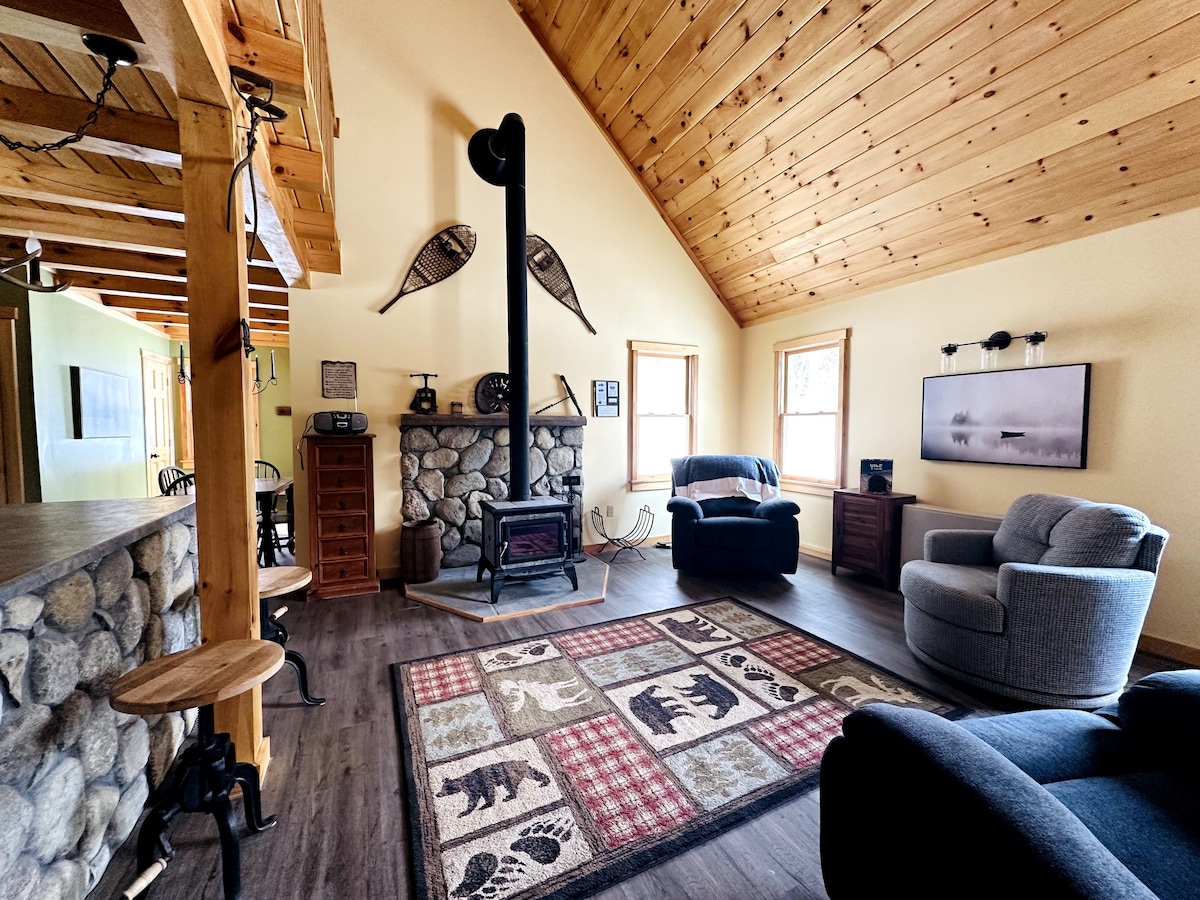 Escape to the Little Bear Lodge located in the heart of the White Mountains! Brimming with charm and character, this quintessential log cabin provides plenty of space for the whole family in a private, idyllic mountain setting. Bring your bags & leave everything else to us. Fully stocked kitchen & coffee bar, cozy living room, and spacious bedrooms. Lots of outdoor space too - a screened in porch, deck, patio and beautiful landscaping.