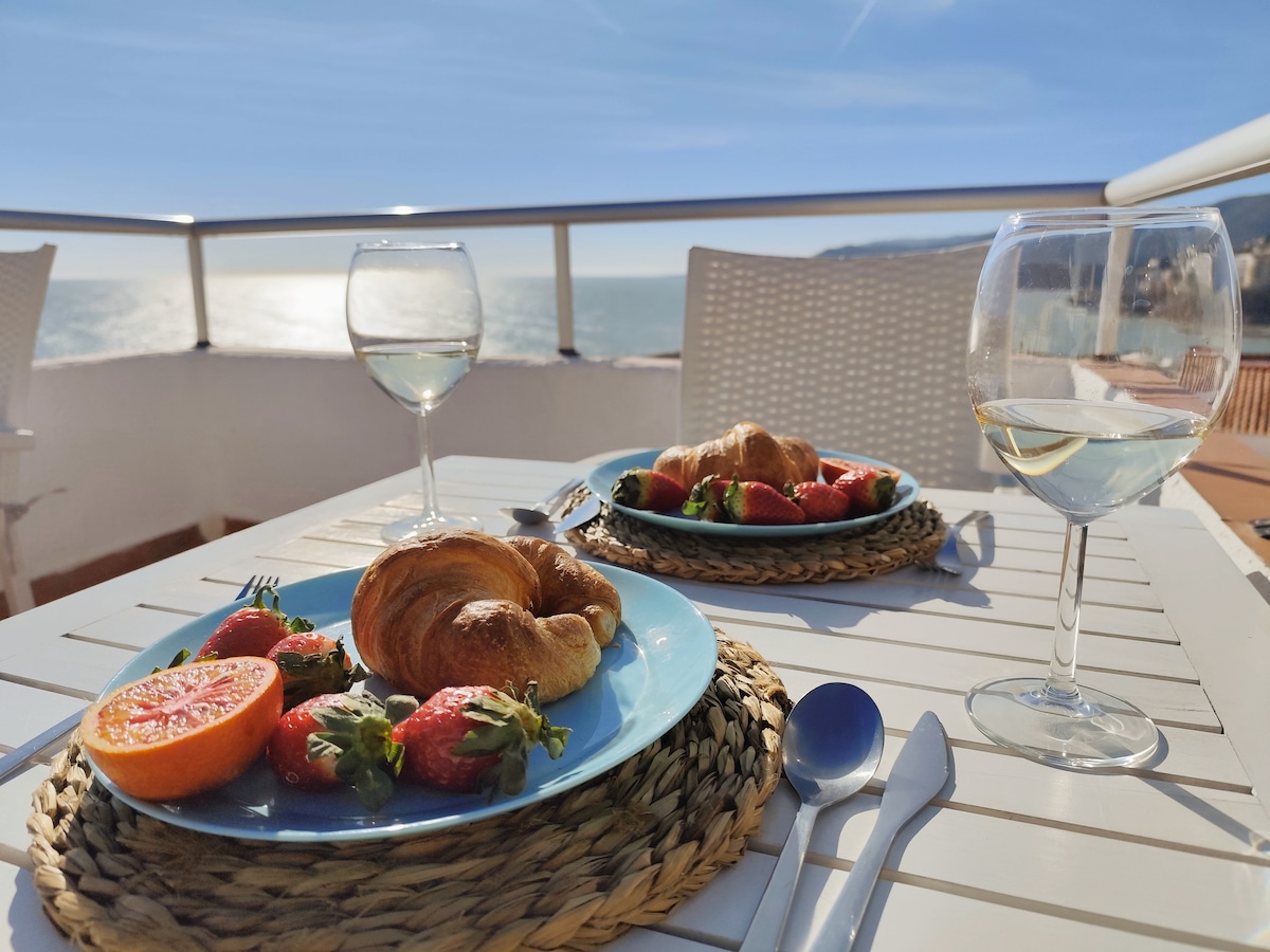 Apto con terraza, vistas al Mediterráneo y parking