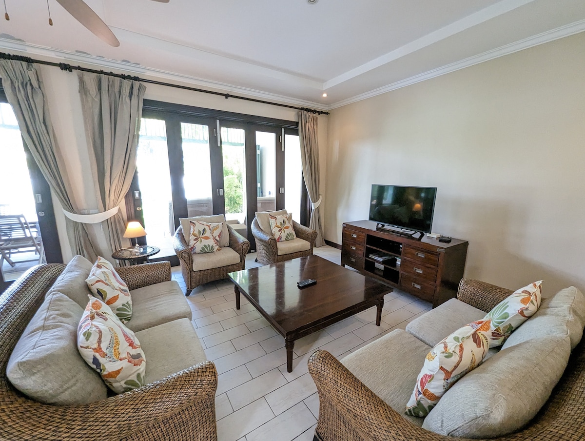 Kiralamak için Sağlık ve Turizm Bakanlığı tarafından onaylanmıştır Eden Adası'nda sessiz, olgun bir alanda ideal bir konumda. - 1. kat - bu nedenle açık suya erişimi olmayan çocuk güvenli bir daire. - Körfez manzarası - Geniş açık planlı mutfak + yaşam alanı, açık havada yemek için güzel bir balkona açılır. - King boy yataklı ana yatak odası, özel banyo + ana balkona açılan kapıları olan ebeveyn banyolu duş. - 2. yatak odasında iki tek kişilik yatak, duş, tuvalet ve özel verandası vardır. Tamamen klimalı - Golf Arabası'nın ücretsiz kullanımı