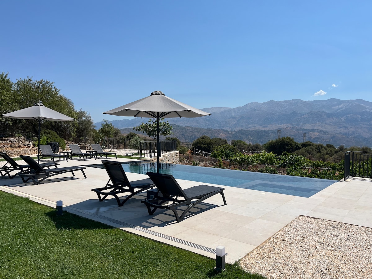 Villa Recluso is a newly build luxurious 120 sq.m. property nestled within a vast 1.500 sq. m. estate, near the village of Malaxa. Surrounded by the breathtaking scenery of the White Mountains and a lush traditional vineyard that produces exquisite wine from a variety of grapes, this private villa offers a peaceful and unforgettable vacation experience. In the area of the villa you will have the possibility to swim in a large pool which can be heated (with an extra daily cost, April-November)