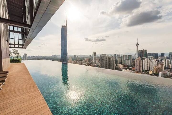 KLCC Manzaralı 2 Yatak Odalı Daire, Sonsuzluk Havuzlu, Şehir Merkezinde