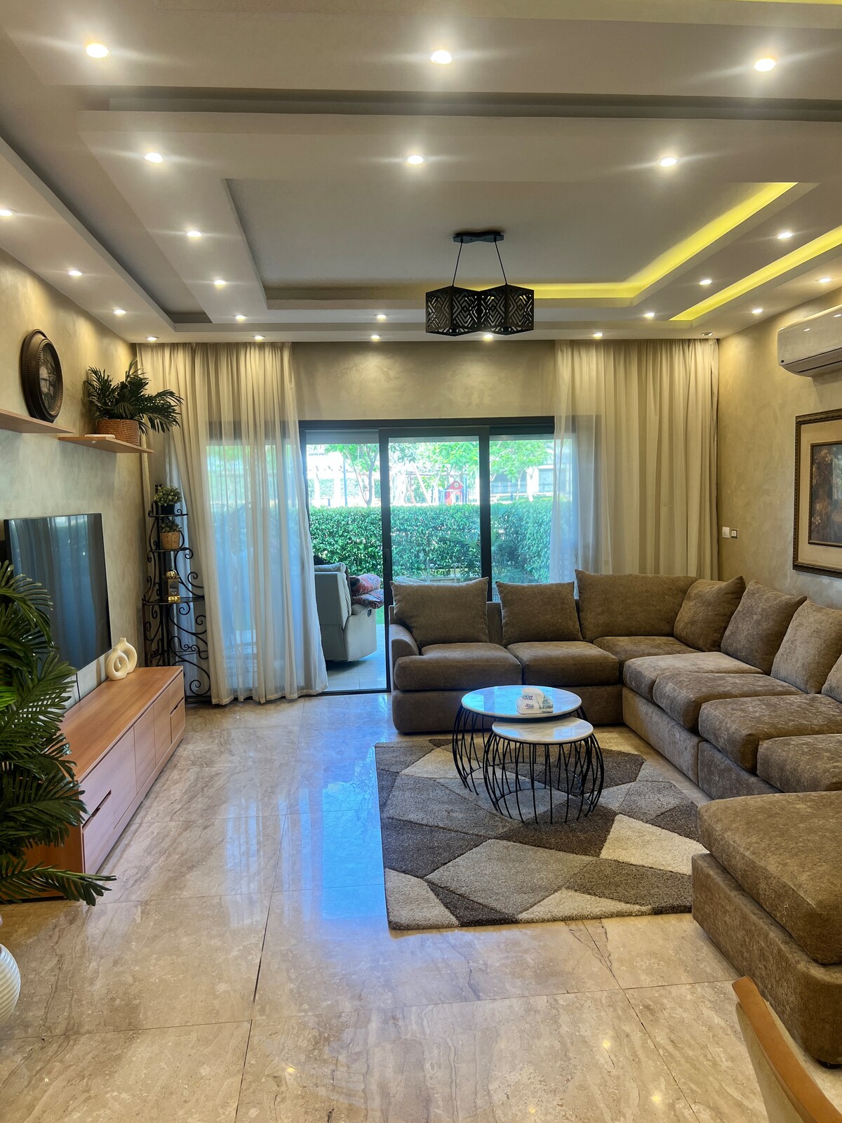 • Ground Floor Home in Beverly Hills, Sheikh Zayed • Luxurious 5⭐ king bed for hotel-style comfort • Fast Wi-Fi 75 Mbps • Unbeatable convenience walk to Carrefour market, Cafés, Restaurants, ATMs, Pharmacy, Reform Pilates Studios, Laundry, El Nada Hospital & Beverly Hills School • 15min to Sphinx International Airport SPX & Smart Village, 25 to Grand Egyptian Museum and 30 to Pyramids. • Private garden perfect for outdoor relaxation •As per local laws, photos of guest passports must be submitted