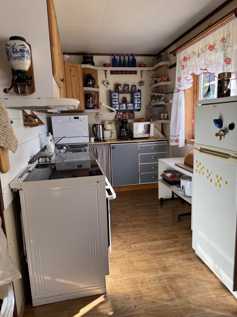 Deniz kenarında kır evi, kayalıklara erişim. Huzur ve sessizlik isteyenler, doğayı deneyimlemek isteyenler için mükemmeldir. Kulübenin etrafında güzel bir bahçe var. 1999 yılında inşa edilmiş, biraz aşınma ve yıpranma var. Basit ve anlaşılır standart. Mağazaya 15 dakika. Kulübe, koyun yetiştiriciliği yapan aktif bir çiftlik alanının bir parçasıdır. Bahçedeki koyunlardan elde edilen ürünlerin satıldığı çiftlik dükkanı. İplik, deri, yünlü kumaş, bitmiş örgü ürünü. Kulübede belirli süreler için hayvan besleyin. Bölgede iyi yürüyüş ve yol gezisi fırsatları var. Köy yolunda park edebilirsiniz, kulübeye yaklaşık 100 m yürüme mesafesinde.