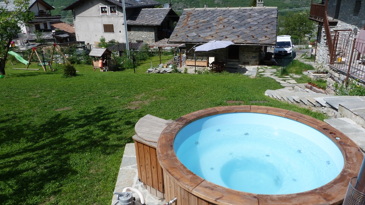 Alp Dağları. İtalya. Aosta Vadisi. 1600 metrede küçük bir köyde, çayırların, otlayan ineklerin ve dağların huzur içinde bir kulübe. Kışın (genellikle) kar yağar. Çatının antik kirişlerini koruyarak sevgiyle restore edilmiş, yürekten bir yer. Büyük pencerelerden harika bir manzara ve huzur, sıcaklık ve rahatlama arayanlar için özel bir huzur. Mobilyalar çok güzel: her şeyden önce ahşap, aynı zamanda daha canlı renkler ve modern konfor. Hem kar ayakkabılarında hem de kayakta sessiz geziler.