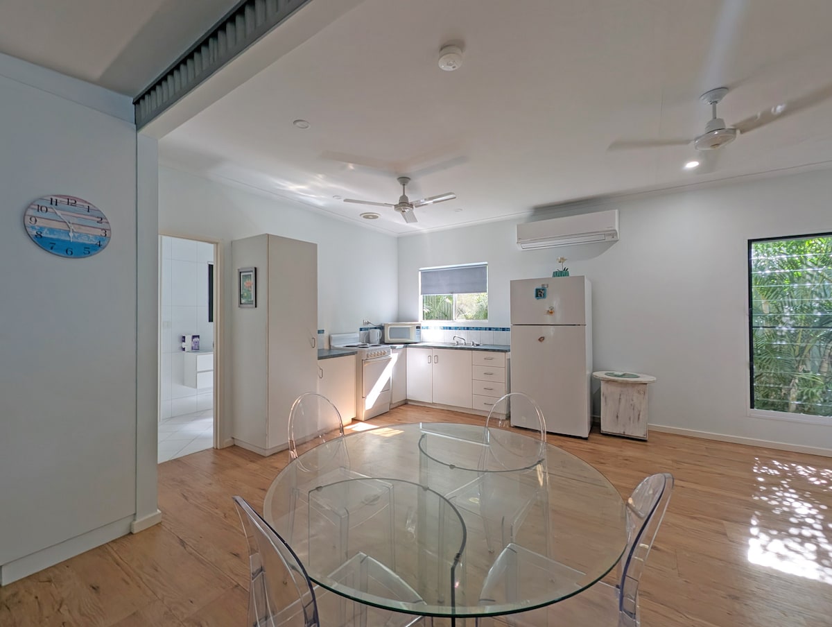 5 dönümlük bir mülkün önünde, tamamen çitle çevrili bir bahçeye sahip, bağımsız bir kır evinde tropikal kırsal yaşamın huzurunun tadını çıkarın. Arnhem otoyolunun hemen dışında, kulübe mağazalara yakındır ve Litchfield ve diğer turistik yerlere yakın olmasının yanı sıra popüler balıkçılık yerleri olan Kakadu'ya açılan bir kapıdır. Kulübede tam donanımlı bir mutfak, iyi stoklanmış bir kitaplık ve keyfini çıkarmanız için birçok masa oyunu bulunmaktadır. Rahatlamak ve gevşemek için harika bir yer.