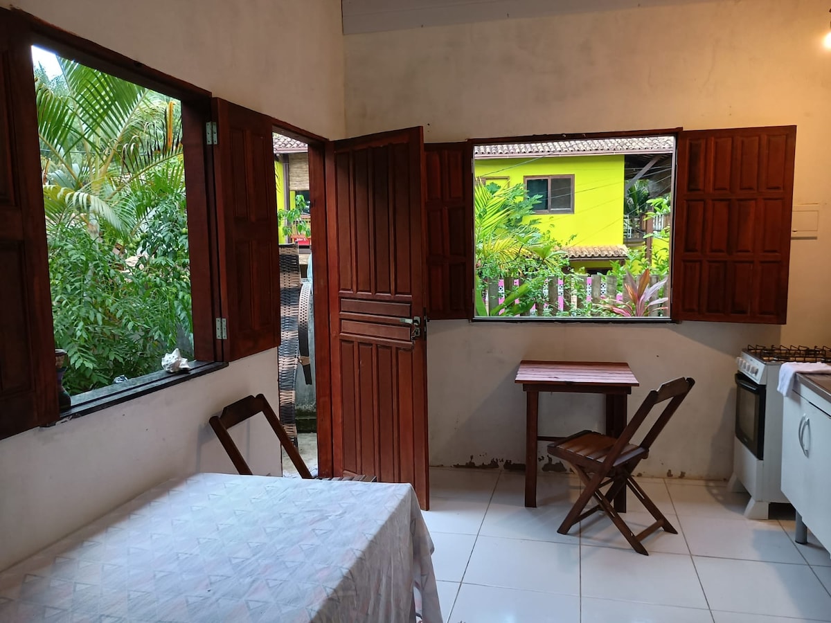 Bu sessiz konaklama yerinde tüm ailenizle birlikte dinlenin. Küçük köşemiz Passagem mahallesinde bulunmaktadır, çok sade ve rahattır. Vantilatörü var ve pencerelerde sineklik var. **Mülkte kedilerimiz ve köpeklerimiz var. Ama eve erişim yok. Yürüyerek kendinizi yürürken bulabilirsiniz: *2 dakika mesafede market, fırın, bakkal. * Concha Plajı'na 20 dakika mesafededir. * Şehir merkezine 15 dakika. * Pituba'ya 30 dakika mesafededir. * Rio de Contas'a 3 dakika. Duşlu ve barbekülü bir açık alanımız bulunmaktadır.