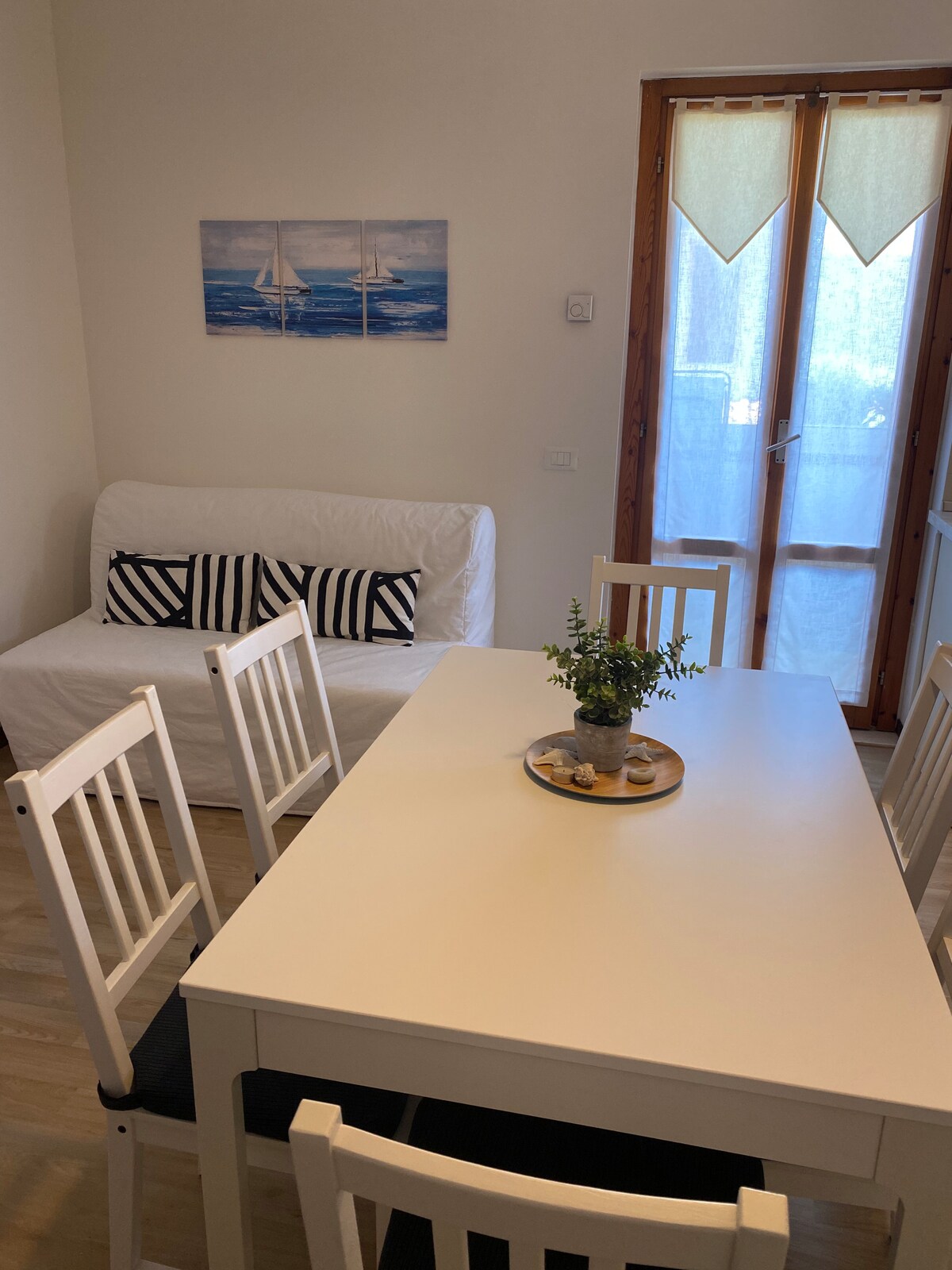 Plaja 1 dakikadan biraz fazla yürüme mesafesinde mini iki odalı daire (3 kişilik). Yakın zamanda yenilenen daire 4. kattadır ve asansörlüdür. Çift kişilik yatak odası, çekyatlı oturma odası, küçük mutfak ve duşlu banyodan oluşur. Deniz manzaralı iki balkon. Conero Körfezi, Porto Recanati, Loreto ve Apeninler'in 360 derecelik panoraması. Klima, LCD TV, kasa, güvenlikli kapı, çamaşır makinesi, ücretsiz kapalı rezerve park yeri, kablosuz internet bağlantısı.
