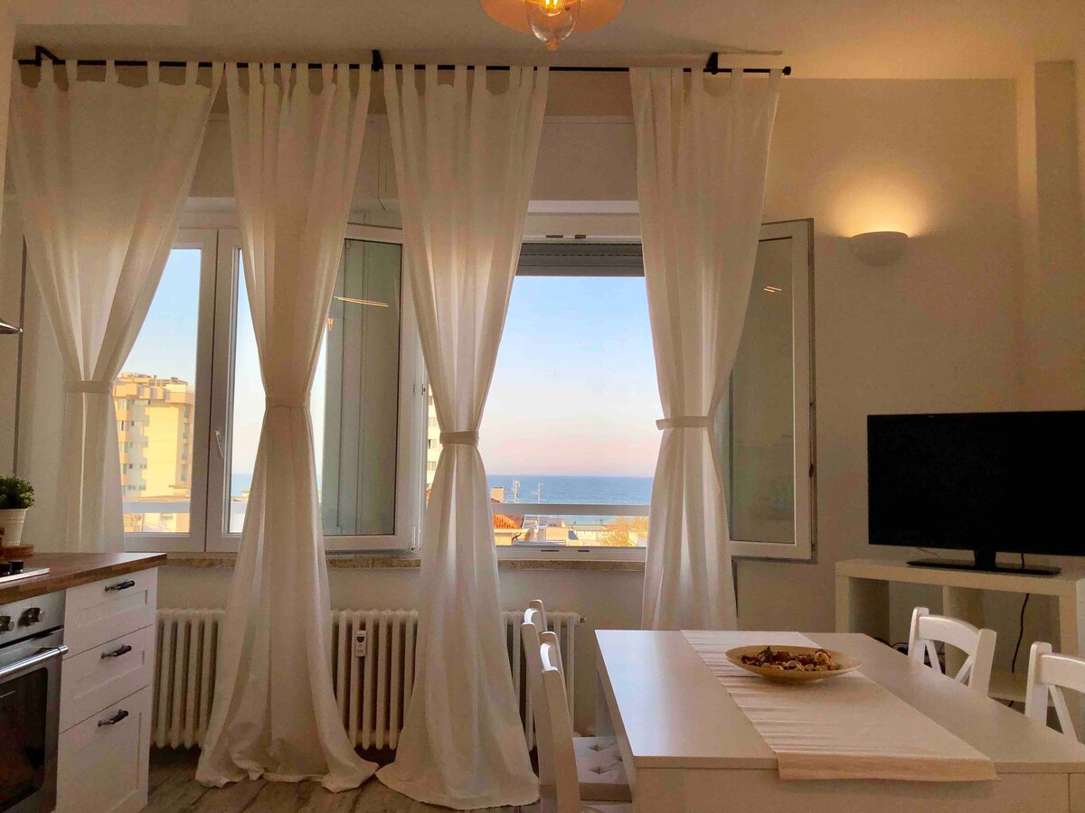 Plajın ve tüm şehrin nefes kesici 360° panoramik manzarasına sahip, deniz kenarında özel çatı katı. Tamamen restore edilmiş daire Denizden tepeye kadar nefes kesici panoramik manzara. Isıtmalı hidromasajlı küvetten oturma odasındaki 75'' Akıllı TV'lere ve entegre Soundbar'lara sahip yatak odasında 65'' akıllı TV'lere ve süper donanımlı mutfağa kadar gereken tüm konforu sunan iki odalı bir daire. Ücretsiz otopark. Birkaç adım uzaklıktaki Rimini'deki TORTUGA PLAJIYLA anlaşın.