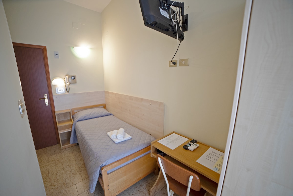 Hotel Arlino'nun en küçük odasıdır, sadece 8 metrekaredir ve küçük boyutuna rağmen tüm konforlarla donatılmıştır. Ekonomik Tek Kişilik Oda bir balkona ve tek kişilik yatağa sahiptir. Ses yalıtımlı değil. Her zaman daha düşük bir maliyetle gelen bu oda tipinin, iyi olanaklara ve uygun fiyatlara sahip bir aile oteli arayan tek seyahatseverler için uygun olduğuna inanıyoruz. ve bu sevimli yerden.