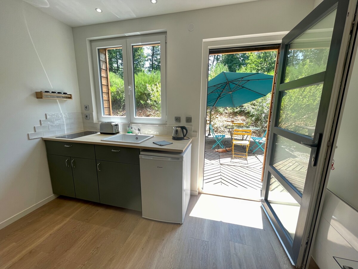 Rahat ahşap kulübe, Ardèche dağlarına bakan teras, doğal bir ortamda sessizliğin tadını çıkaracaksınız. Rahatlama ve doğa sizi bekliyor. Yiyecek içecek yok. Espresso makinesi. Öğütülmüş kahve gerektirir 26/04/07'den 26/08/29'a kadar haftalık kiralama Cumartesi-Cumartesi Ekim ayından nisan ayının sonuna kadar açık olan İskandinav banyosu için bizimle iletişime geçin. Ortak erişim havuzu, 1,30 m su, 5,7 x 3,5 metre. Isıtılmamış. Hava durumuna bağlı olarak mayıs ortasından eylül ortasına kadar açıktır, bizimle iletişime geçin. Evcil hayvan kabul edilmez