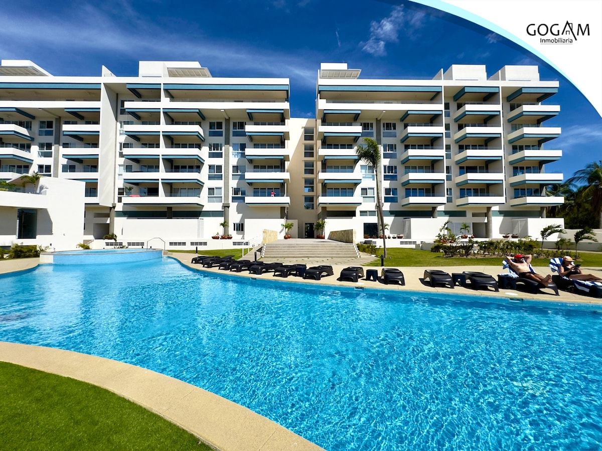Nuevo Vallarta'nın kalbinde, iki küçük çocuklu bir çift veya aile için ideal, tek yatak odalı lüks bir daireyi keşfedin. Golf sahası manzarası ve özellikleri sunar: - Queen boy yatak: Queen boy çekyat. - Tam donanımlı banyo - Tam donanımlı mutfak - Çamaşır kurutma makinesi - Özel teras. - Tam donanımlı spor salonu - Her odada klima. - Geniş havuz - Jakuzi - 24 saat güvenlik. - Nuevo Vallarta plajlarına arabayla sadece 4 dakika.