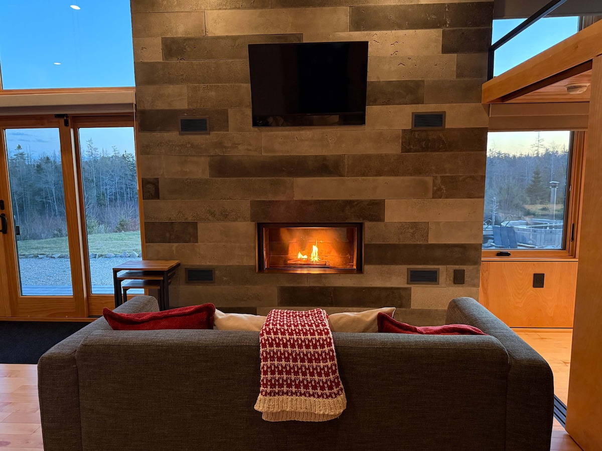 Okyanusun yukarısında yer alan bu çağdaş iki yatak odalı kır evi, geniş sahil manzaraları, çarpıcı gün batımları ve yıldızlı gökyüzüzerinde bir kubbe sunuyor. Deep Cove'un girişine ve Chester, Nova Scotia'ya bakan bu tenha dört mevsimlik kır evi, romantik bir çiftin kaçamağı veya günlük hayattan huzurlu bir kaçış için ideal, huzurlu bir kaçış sunuyor.