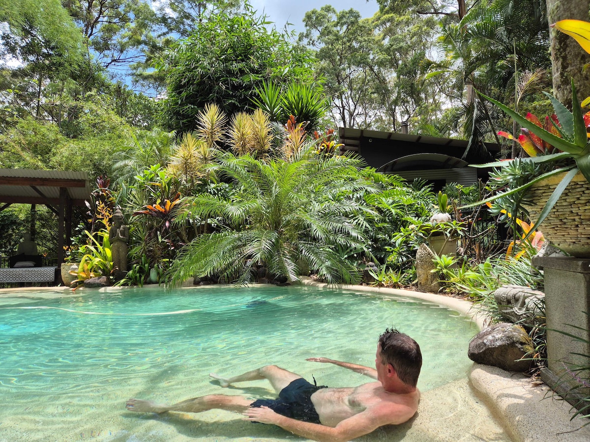 Alaya Ascend, is the Sunshine Coast's best kept secret. Self-directed Revitalisation & Reconnection retreat. 'Me-We' - individual restoration first, then reconnect effortlessly. Floatation tank, in-room massages, cold tub, sauna steam room, hot tub. 13+ years and 400+ 5-star reviews, demonstrated excellence. In-room fireplaces and hot tub spas for further decompression and relaxation. The simple beauty of the retreat's tropical gardens, oasis pool surrounded by guests' bungalows. Feel Different