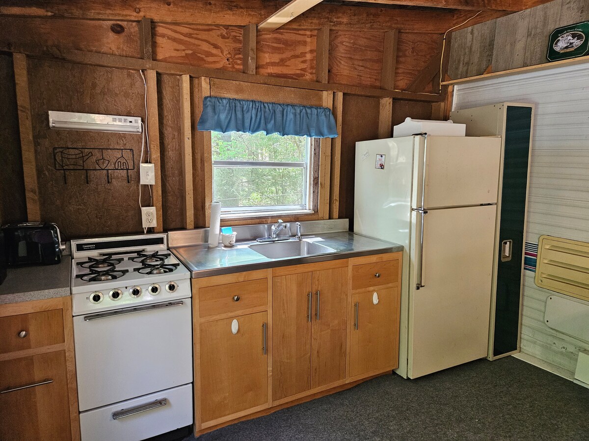 Su üzerinde açık hava verandası olan güzel özel kamp aracı. Tüm konforu yarısı fiyatına. Çok özel ama Northampton veya Easthampton'a 15 dakika mesafededir. Mutfak lavabosu, 2 gözlü ocak, buzdolabı, tuvalet ve duş, bir çift kişilik yatak ve ikiz ranza, yemek masası da yatağa dönüşebilir. Tencere, tava, çatal bıçak takımı ve mutfak gereçleri mevcuttur. Kamp aracında elektrik ve su, ısıtma ve klima vardır. Açık havada yemek pişirmek için Blackstone ızgara bulunmaktadır.