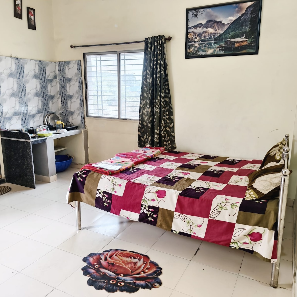 Relax with the whole family at this peaceful place to stay in Raipur 5 minutes from Ambuja City Centre Mall Free Parking Available Best in Raipur for couples 20 minutes from Airport One bed Heating rod and geyser provided for water heating Hari