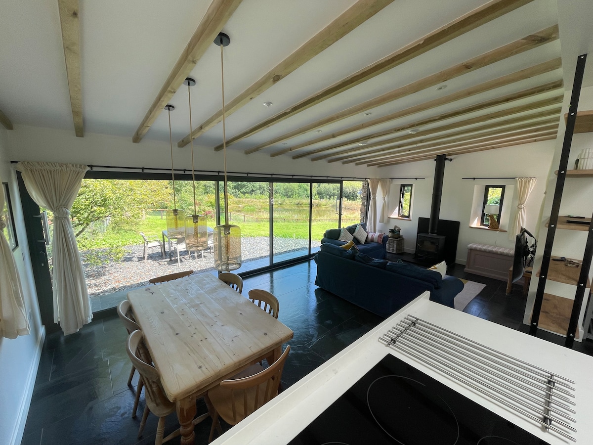 Yeniden doğallaştırılmış ahırda kaçamak | Gölet manzaraları | Köpek dostu