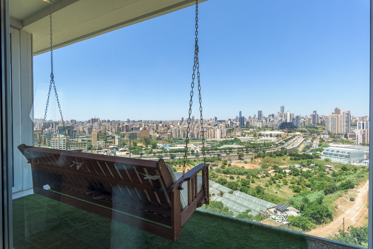 Şehirden sessiz bir kaçış yeri mi arıyorsunuz? Dinlenme, dinlenme ve sıfırlama yeri mi? Parlak çatı katımızı ziyaret edin ve muhteşem bir gün batımı ile Lübnan sahil şeridinin muhteşem bir manzarasının keyfini çıkarın. Oturma odası, küçük mutfak, banyo ve geniş bir açık alana sahip tek yatak odalı bir daire. Uzaktan çalışma için ideal bir yer ve bir partner veya arkadaşlarla eğlenmek için mükemmel bir dinlenme yeri.