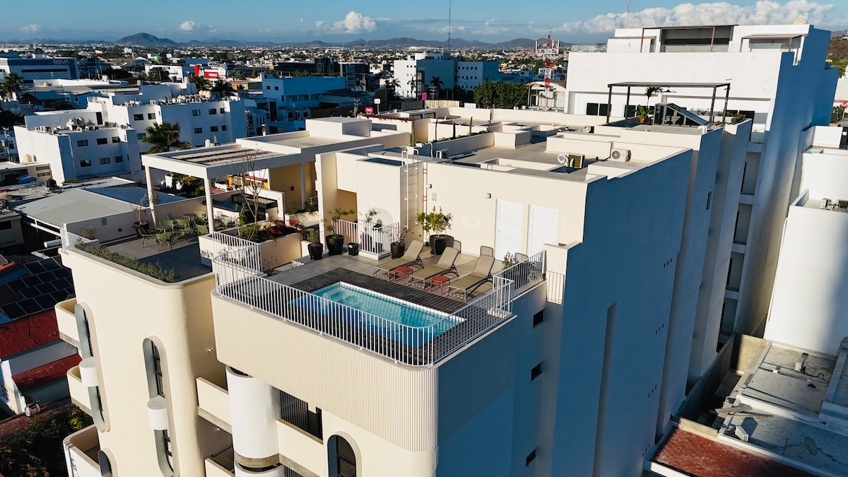 Mükemmel tasarıma, birinci sınıf yüzeylere, çok iyi doğal ışığa sahip modern tarzda güzel bir daire, restoranlar, barlar, bankalar, kafeler gibi tüm hizmetleri bulabileceğiniz ve plajın 5 dakika yürüme mesafesinde olduğu, çok az dalgalı ve suyu çok hoş olan en sakin plajlardan biri olan Mazatlán'ın altın bölgesinde bulunmaktadır. Önceden rezervasyon yapılması gereken teraslı ve barbekü olan çatı bahçesinde ortak alan bulunmaktadır.