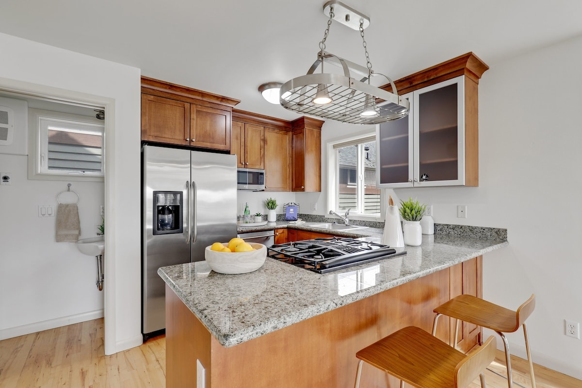 Lower Queen Anne, 96 puanla yürüyor ve İklim Taahhüdü Arenası ile diğer Seattle destinasyonlarına çok yakın. Akıllı TV ile çağdaş tarzda oturma odasında dinlenin, kuvars tezgahlarda ev yapımı bir yemek hazırlayın veya şehir merkezine, Rıhtıma ve Uzay İğnesine bakan inanılmaz manzaralı bir kadeh şarabın tadını çıkarın! Konaklamanıza bir sokak park giriş kartı dahildir, ancak sokak park etmenin zaman zaman zor olabileceğini unutmayın.