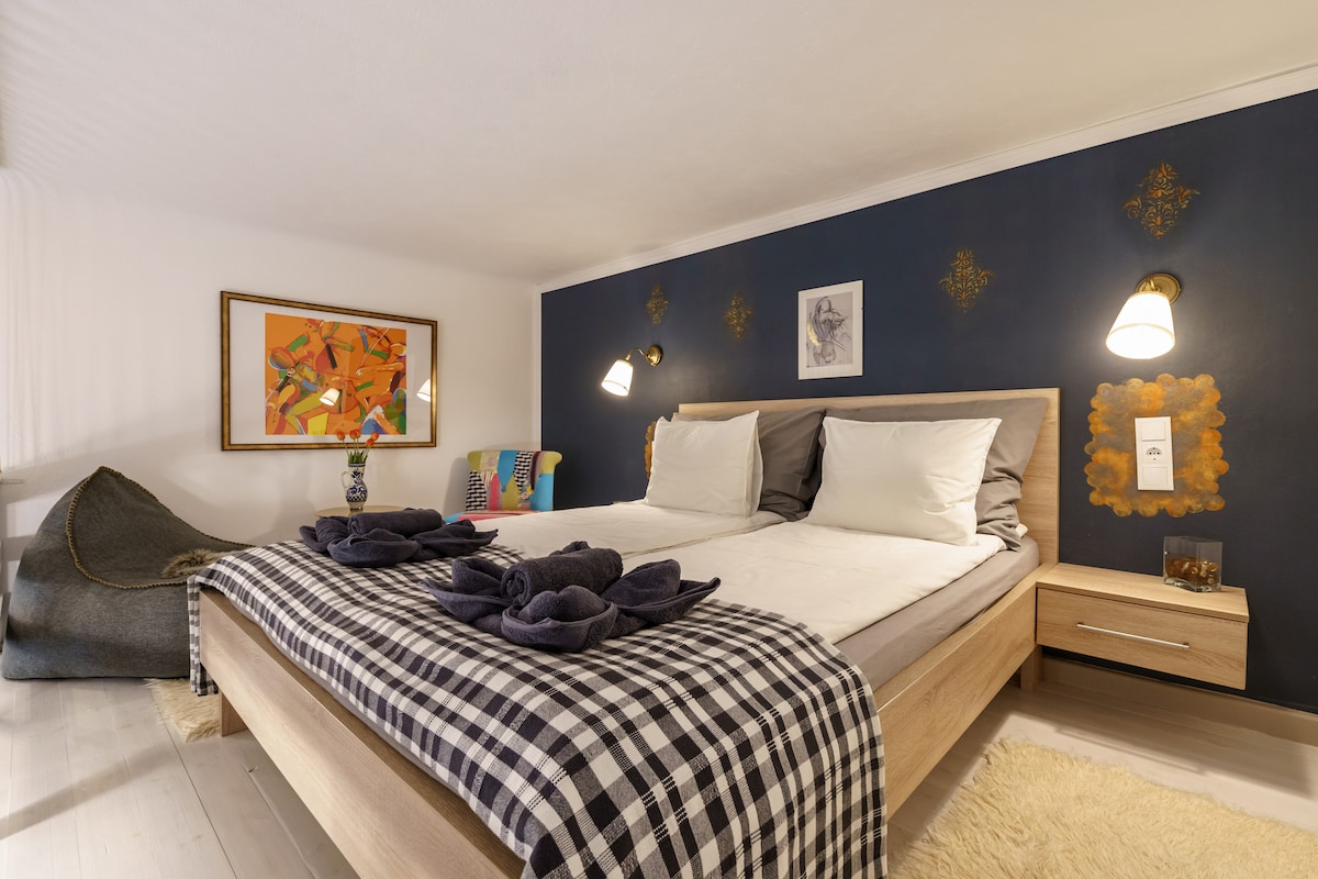 Huzurlu, evimizdeki romantik stüdyomuz Buda'nın göbeğinde, Tuna'ya sadece bir tramvay durağı uzaklıktadır. Merkezi konumda ve hala sessiz, bir Bauhaus binasının 6. katında. Konumu harika: Buda'nın ana bulvarında yer alır, Budapeşte'de gece gündüz çalışan 4-6 numaralı tramvay evin hemen önünde durur. Daire iç bahçeye baktığı için sessizdir. Çiftler, bekarlar, iş için seyahat edenler için mükemmeldir.